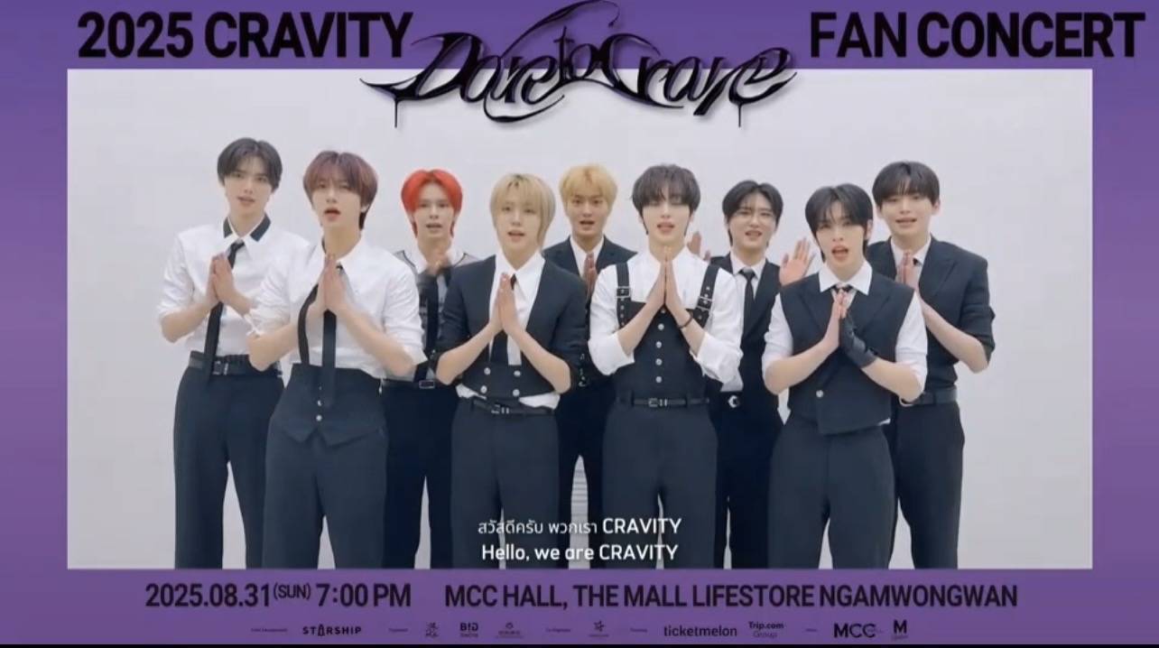 韓国のボーイズグループ・CRAVITY(クレビティ)が、2025年8月31日(日)にバンコク近郊のMCC Hall, The Mall Lifestore Ngamwongwanで開催される「2025 CRAVITY FAN CONCERT [Dare to Crave] in BANGKOK」に向けて、タイのファン“LUVITY”に特別なメッセージを寄せました。