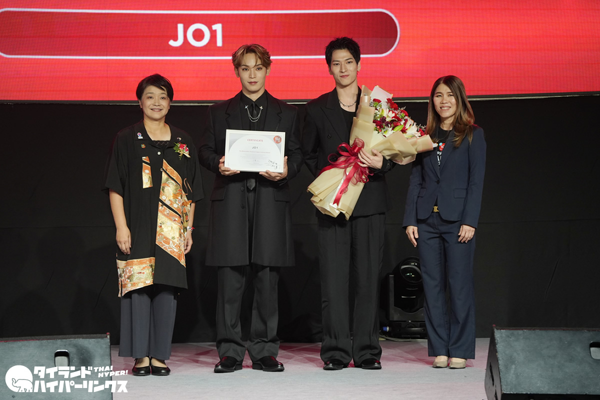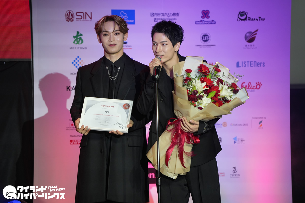 10周年を記念する最高賞には、日本の人気グループ JO1 が選ばれました。與那城奨と金城碧海が代表として登壇し、観客の大歓声に包まれながら受賞しました。