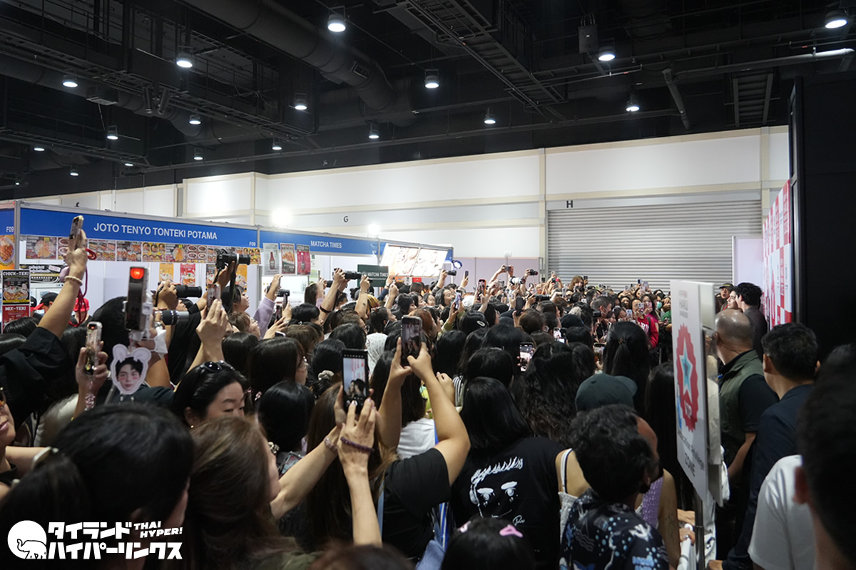 その後2人は、ステージ横のバックボード前でファンサービスも実施。アップ&プームを一目見ようと詰めかけたファンに囲まれ、二人は笑顔で気軽に写真撮影に応じていました。会場の熱気はさらに高まり、ファンとの距離の近さが印象的なひとときとなりました。