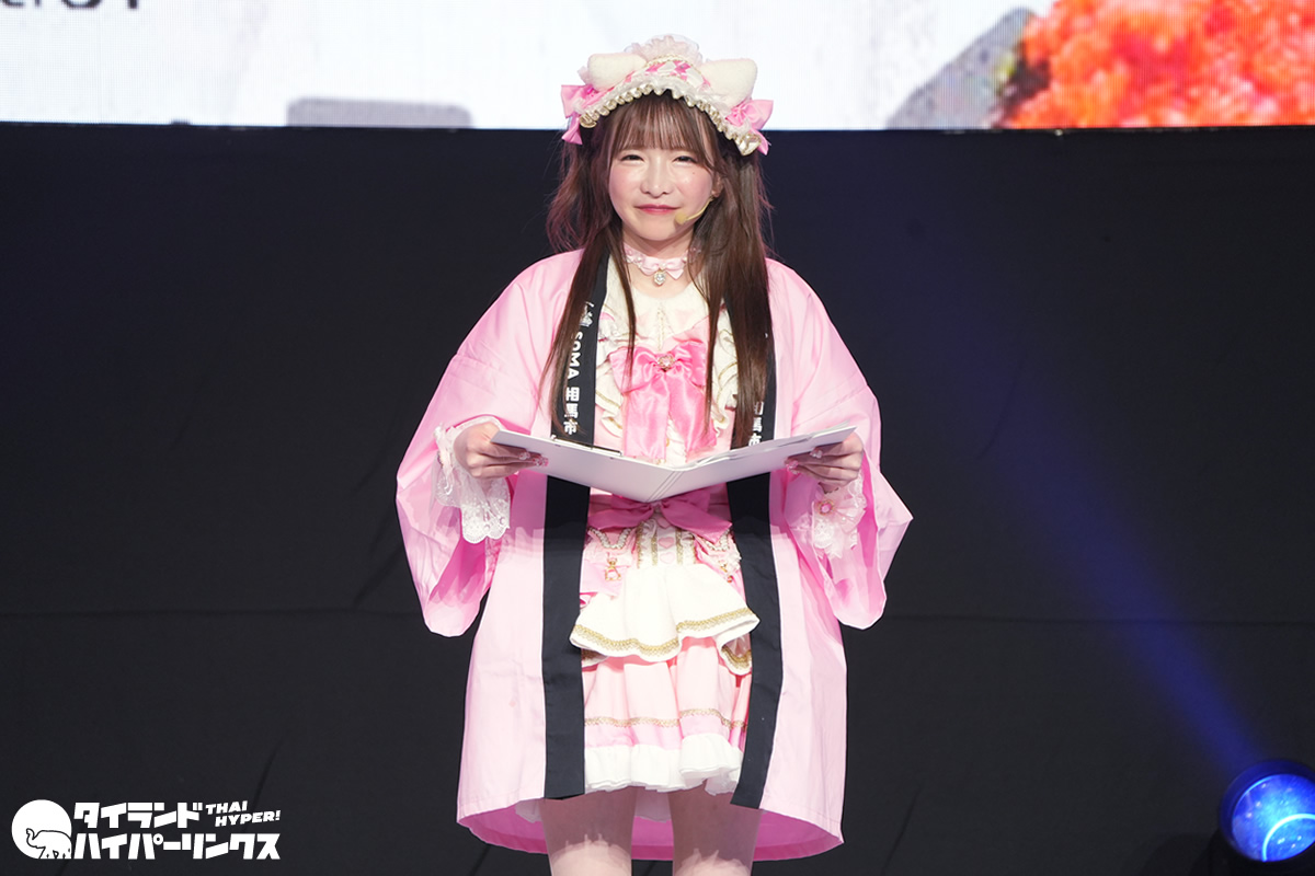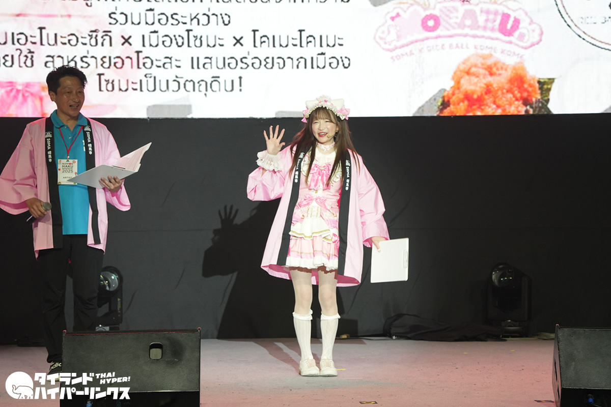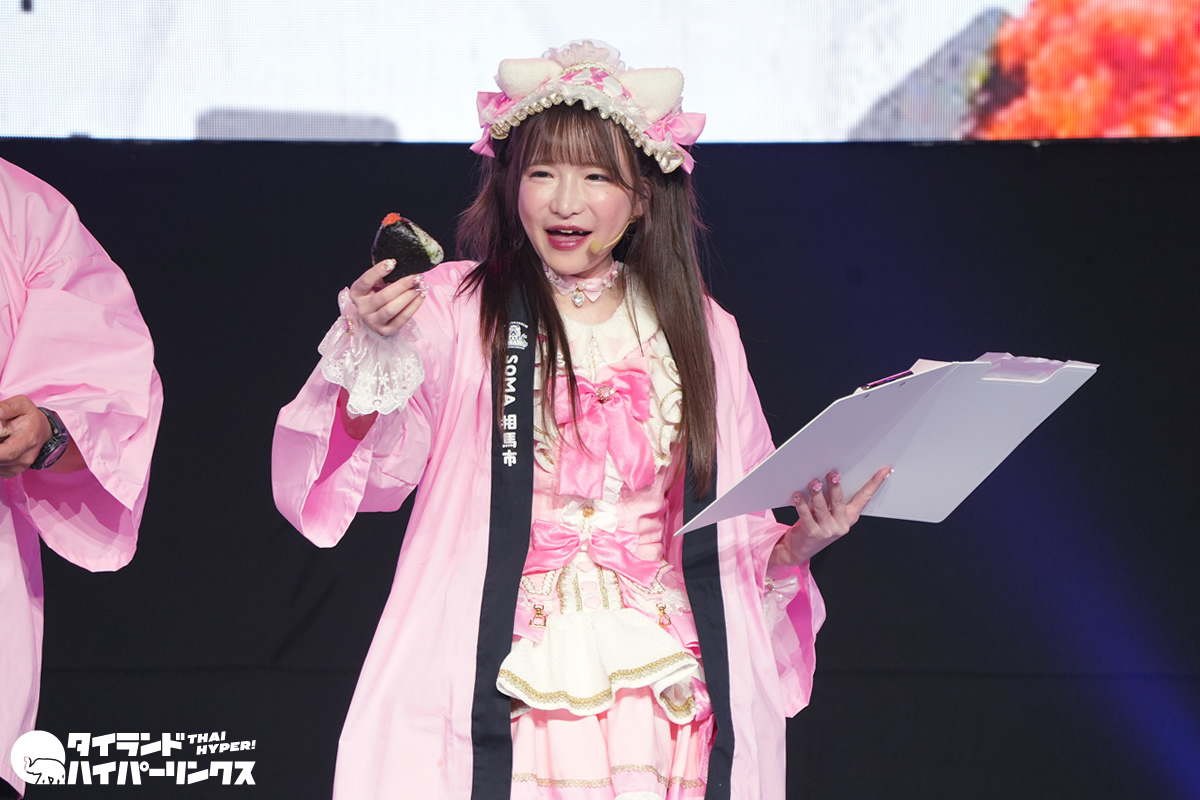アイドルで大食いタレントとしてもお馴染みの“もえあず”こともえのあずきが2025年8月30日(土)、タイと日本をつなぐ恒例の文化交流イベント「バンコク日本博2025」2日目のメインステージに登場。福島県相馬市のPRを行いました。