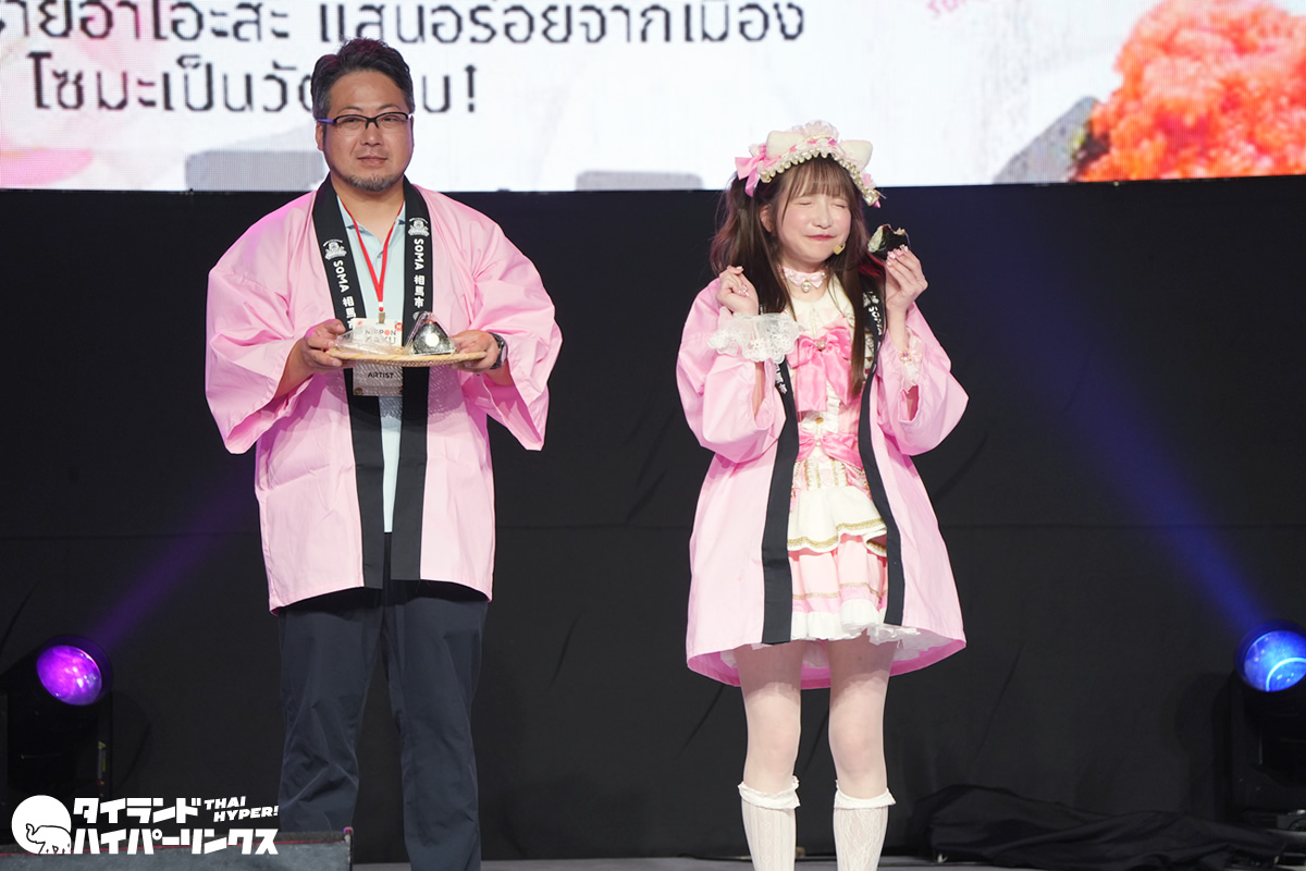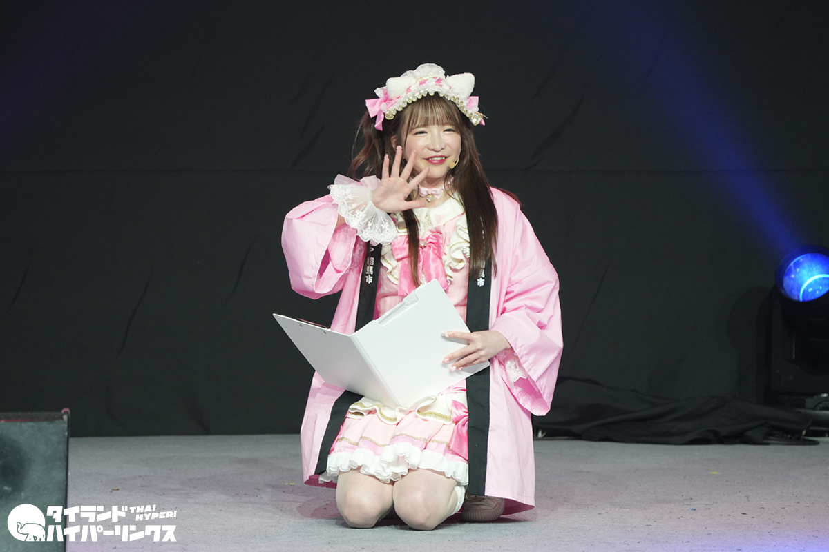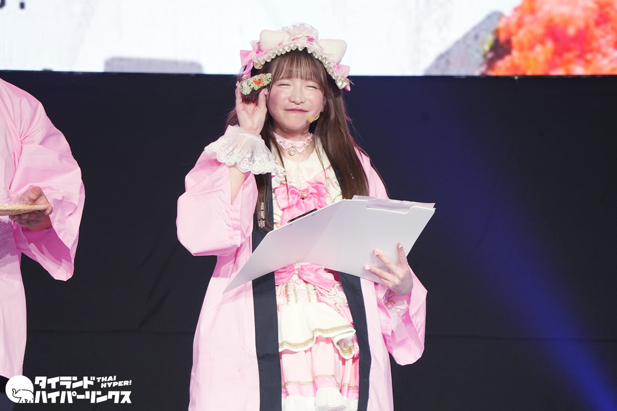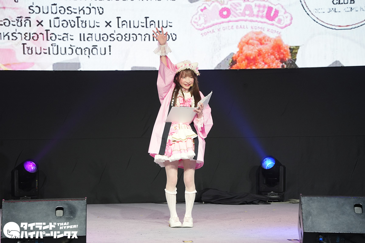 アイドルで大食いタレントとしてもお馴染みの“もえあず”こともえのあずきが2025年8月30日(土)、タイと日本をつなぐ恒例の文化交流イベント「バンコク日本博2025」2日目のメインステージに登場。福島県相馬市のPRを行いました。