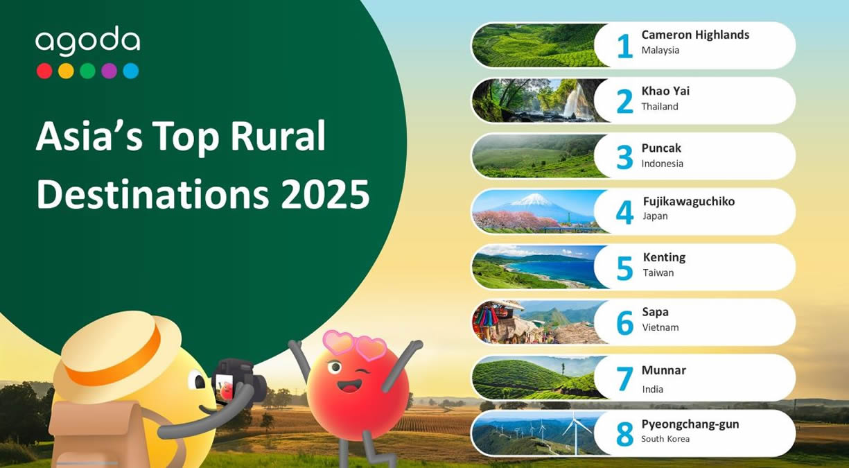 デジタル旅行プラットフォームのアゴダは、アジアの農村観光地ランキングを発表しました。マレーシアの「キャメロン・ハイランド」が1位を獲得し、タイの「カオヤイ」が2位、インドネシアの「プンチャック」が3位に選ばれました。