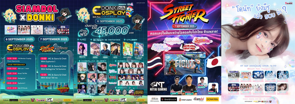 タイのアイドルプロダクション Siamdol(サイアムドル) と、バンコク・トンロー通りソイ10にある ドンキモール・トンロー がコラボレーション。会場となる同モール4階の ドンキホール で、2025年9月6日(土)と7日(日)の2日間にわたり、コスプレ、ゲーム、アイドルライブと盛りだくさんのプログラムが開催されます。