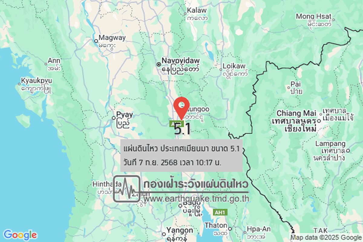 2025年9月7日午前10時17分ごろ、ミャンマー中部を震源とするマグニチュード5.1の地震が発生しました。震源地は北緯18.789度、東経96.497度、震源の深さは約10キロメートルで、タイ北部メーホンソーン県クンユアム郡の南西およそ152キロ地点とされており、同県を中心にタイ北部でも揺れが観測されました。
