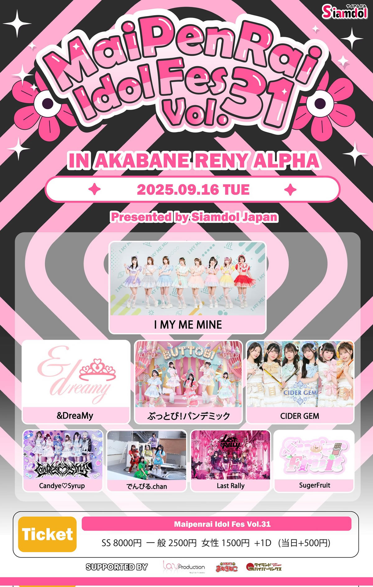 タイから日本に進出したサイアムドルによる対バンライブイベント Siamdol presents 【Maipenrai Idol Fes Vol.31】が、2025年9月16日(火)に東京・赤羽 ReNY alphaで開催されます。