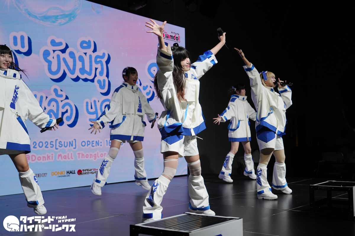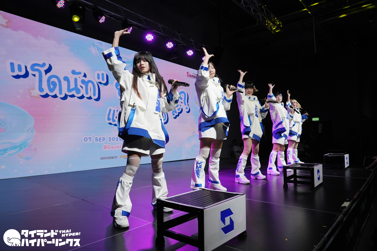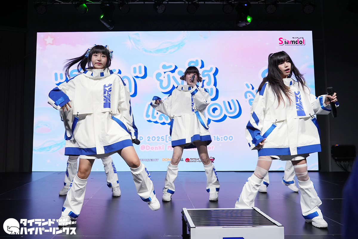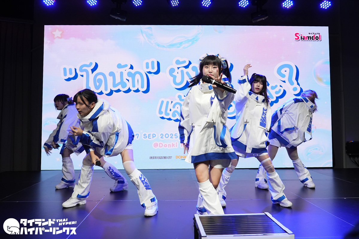 タイのアイドル対バンライブ Siamdol presents 『โดนัทยังมีรู แล้วYOUล่ะ?(ドーナツワンミールー レオ You ラ?)』が、バンコクのドンキホール(ドンキモール・トンロー4階)で2025年9月7日(日)に開催されました。トップに登場したのは、SILVER LININGです。