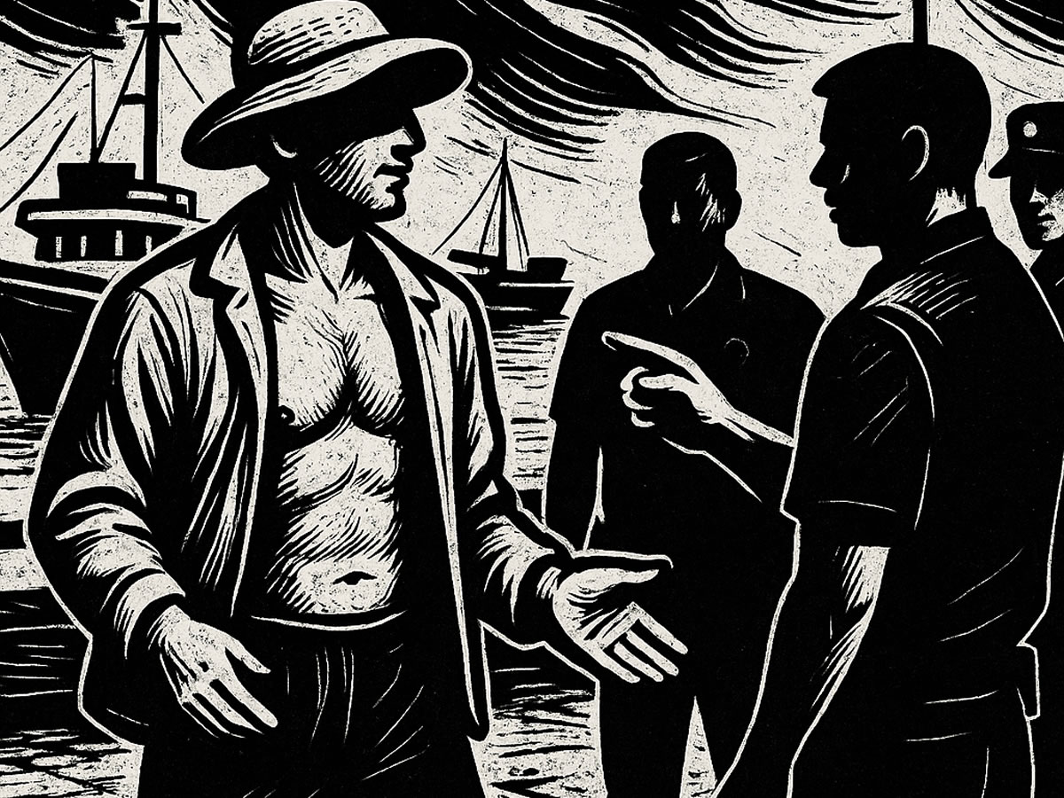 タイ警察中央捜査局(CIB)は、海の向こうから吹く風のように、港町に漂う違和感に静かに目を向けた。舞台は、青く広がる海とエンジン音の交錯する船着場。そこに現れたのは、ジャケットの下に素肌を隠し、短パン姿で歩く一人の男。