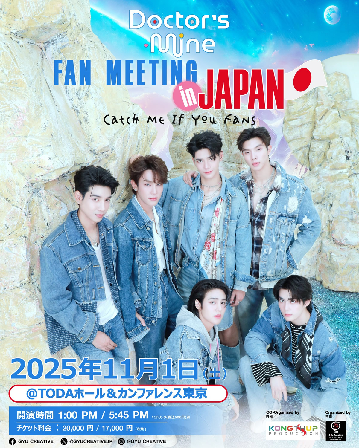 大人気タイBLドラマ「Doctor’s Mine」のキャストが訪日し、ファンミーティング「DOCTORʼS MINE FANMEET in Tokyo 2025」が2025年11月1日(土)、東京・TODAホール&カンファレンス東京 ホールAにて開催されます。