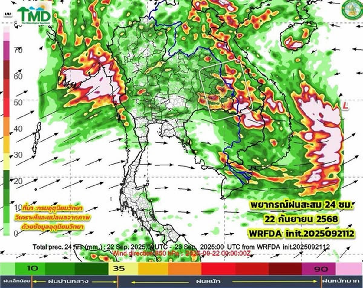 タイ気象局(TMD)は2025年9月22日、モンスーントラフの活発化と台風「ラガサ」の影響により、27日ごろまで全国的に大雨から非常に強い雨に警戒するよう呼びかけました。北部、東北部、東部、中部、バンコク首都圏でも降雨が続く見込みで、23日から26日にかけては南西モンスーンが一層強まり、東北部や東部を中心に雨量が増えるとしています。タイ政府メディアNNTが伝えています。