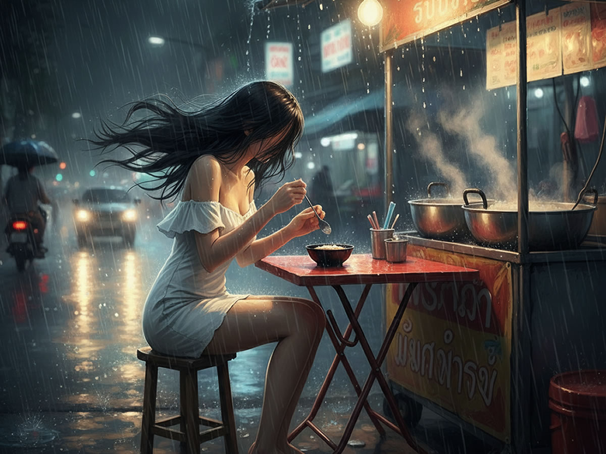 「ブア(บัว)」は蓮、「ローイ(ลอย)」は浮かぶを意味し、小さな団子が甘いココナッツミルクの中でぷかぷかと漂う姿が睡蓮を思わせることから名付けられました。基本は米粉・ココナッツミルク・砂糖だけというシンプルな菓子ですが、紫芋やかぼちゃ、パンダンなどで色付けされた団子が入るなど、現代では見た目も華やかに進化しています。
