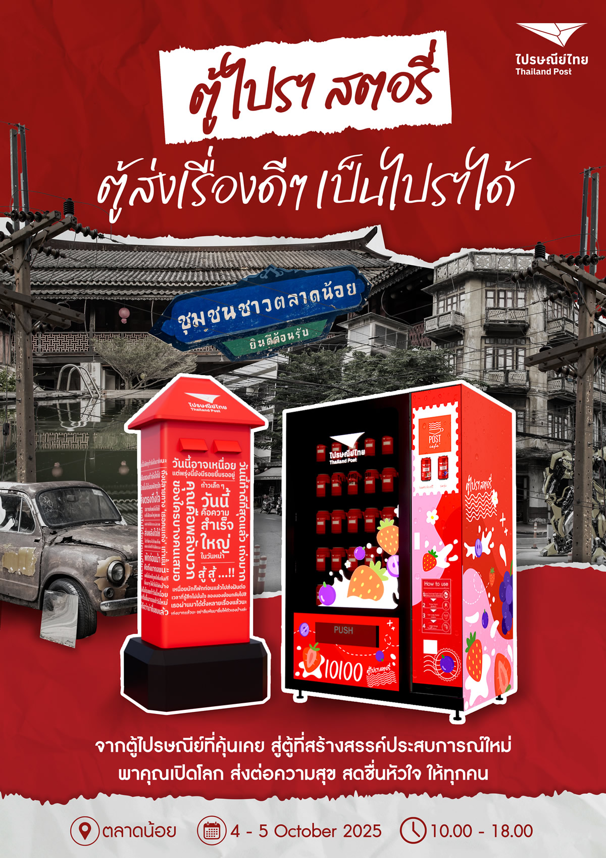 タイ郵便局(Thailand Post)は、142年間にわたり国民に親しまれてきた赤い郵便ポストを新しい形で楽しめるイベント「ไปรฯ ストーリー(プライストーリー:郵便局ストーリー) – POSTsible Together」を初開催します。期間は2025年10月4日(土)と5日(日)、時間は10時から18時まで、会場はバンコク旧市街の人気エリア・タラートノーイです。