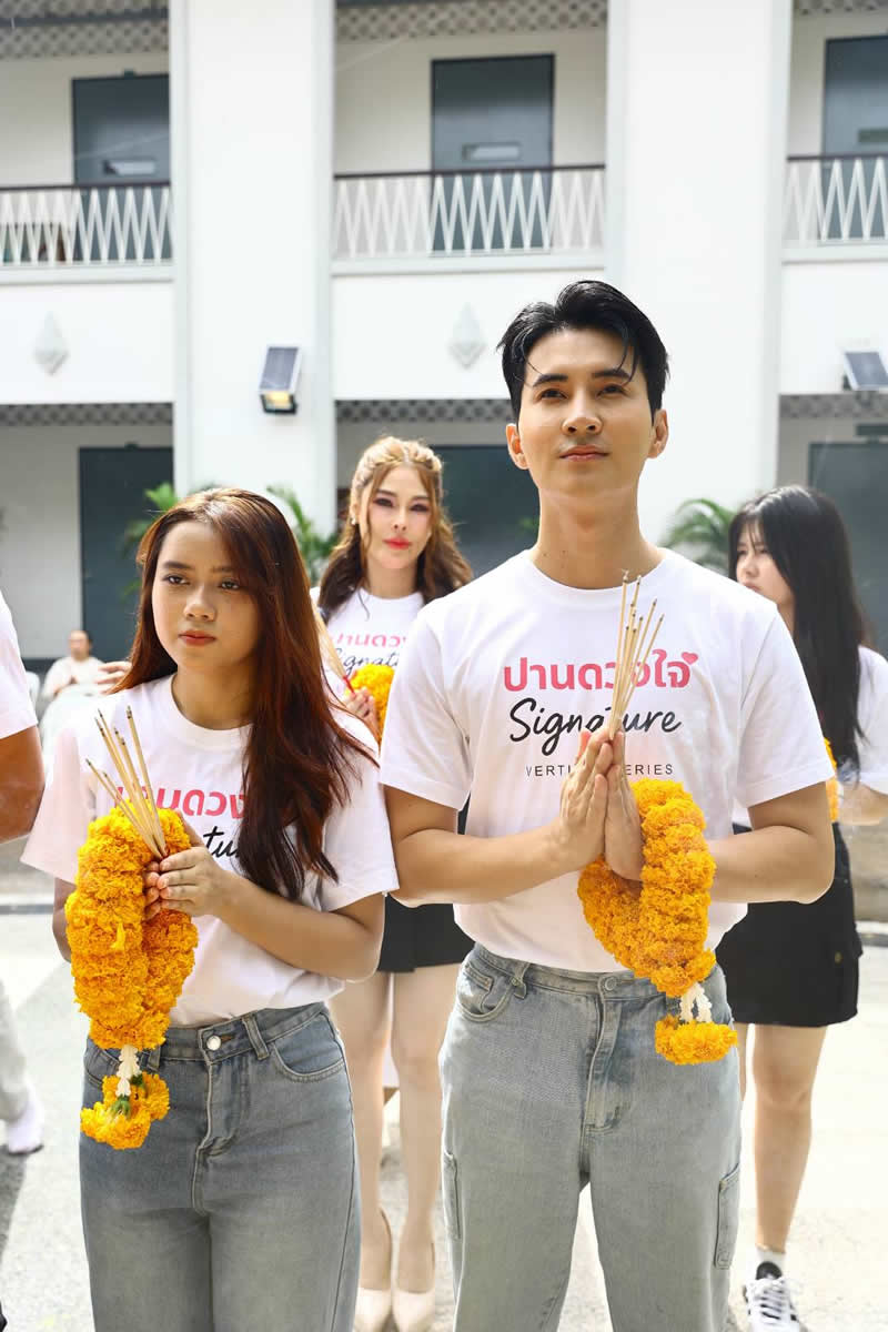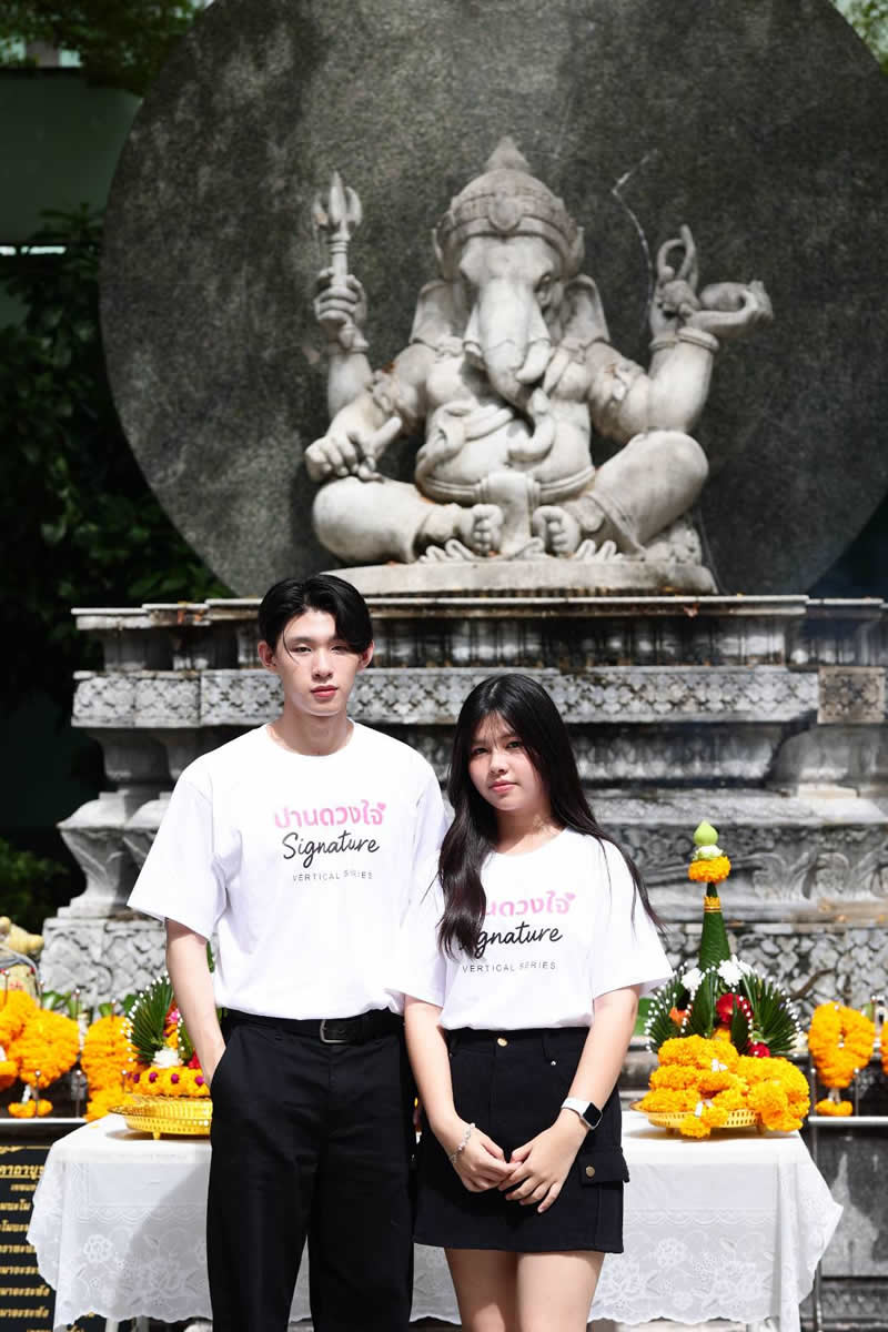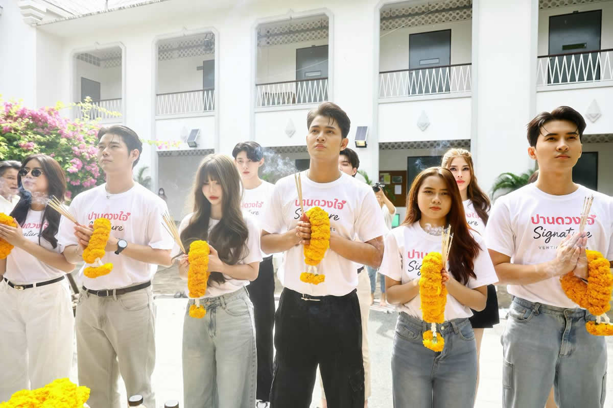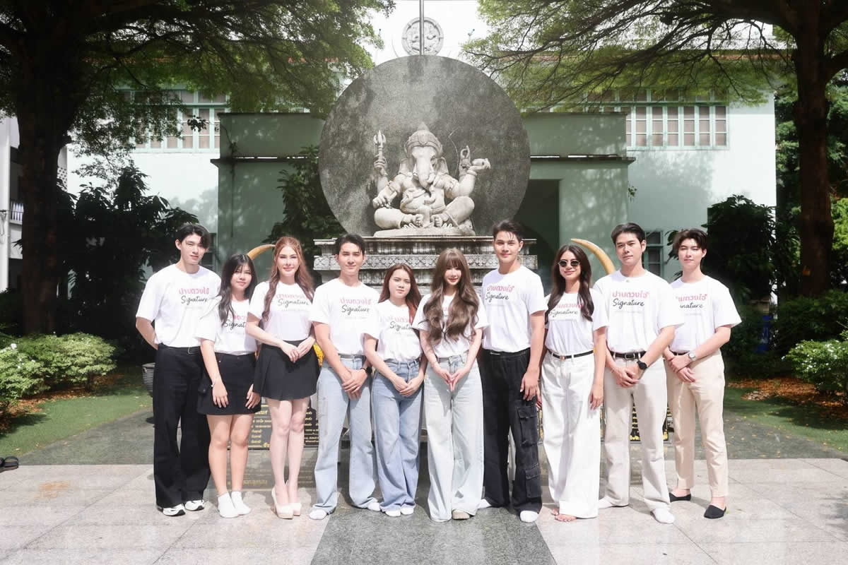 2025年9月27日(土)午前9時39分の吉時に、縦型シリーズ「パーンドゥアンチャイ・シグネチャー(ปานดวงใจ Signature)」の出演者たちが、バンコク旧市街・ワンナー(前王宮)にあるパタナシン・タイ国立芸術大学(Bunditpatanasilpa Institute)のガネーシャ像広場(ลานพระพิฆเนศร์)にて、作品の撮影開始に先立ち祈願式を行いました。