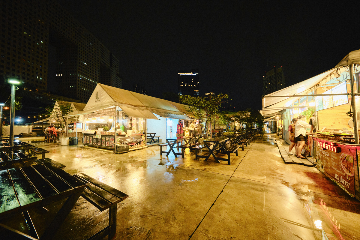 バンコクの人気スポット「グリーンビンテージ・ナイトマーケット」。ソウタとカイが運命的な再会を果たした後に訪れる場所。本来このシーンは快晴の下で撮影される予定だったが、突然のスコールにより急遽“雨のデートシーン”へと変更された。予期せぬ雨に包まれたマーケットで、静かに距離を縮めていく二人の姿は、偶然とは思えないほど自然で、切なくも美しい。雨粒の中で交差する視線と、言葉にならない感情が交錯するこの場面は、作品全体の空気感を象徴する、胸を打つ名シーンとなっている。