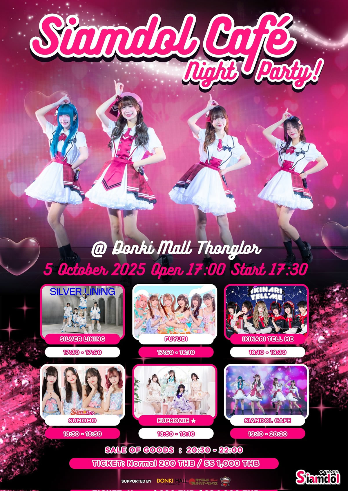 アイドル対バンライブ イベント Siamdol presents『Siamdol Cafe Night Party』が、バンコクのドンキホール(ドンキモール・トンロー)で2025年10月5日(日)に開催されます。