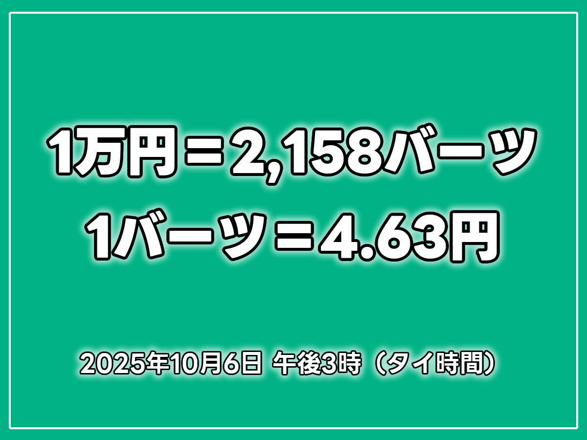 1万円=2159バーツ、1バーツ=4.63円【2025年9月8日】