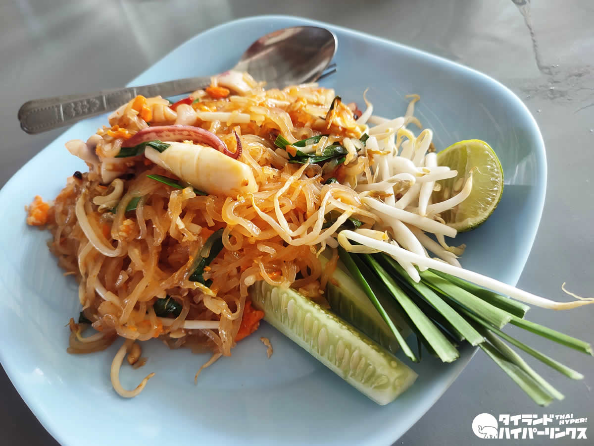 使用する麺として推奨されたのがチャンタブリー県産の細い米粉麺「センチャン」。炒めても伸びにくく歯応えがあり、パッタイ用の“標準麺”として位置づけられ全国に流通。センチャンの選定には、国策としての明確な意図が反映され、統一された味とスタイルを支える要となりました。タイ国政府観光庁によると、センチャンは通常のセンレックより強いコシともちもちした柔らかさが特徴で、その評判が広まり現在はタイ全土で広く販売されるようになりました。粘りが強いため、調理時は一度水に浸してぬめりを取り、麺がくっつかないよう広げながら炒めるのが一般的だとしています。