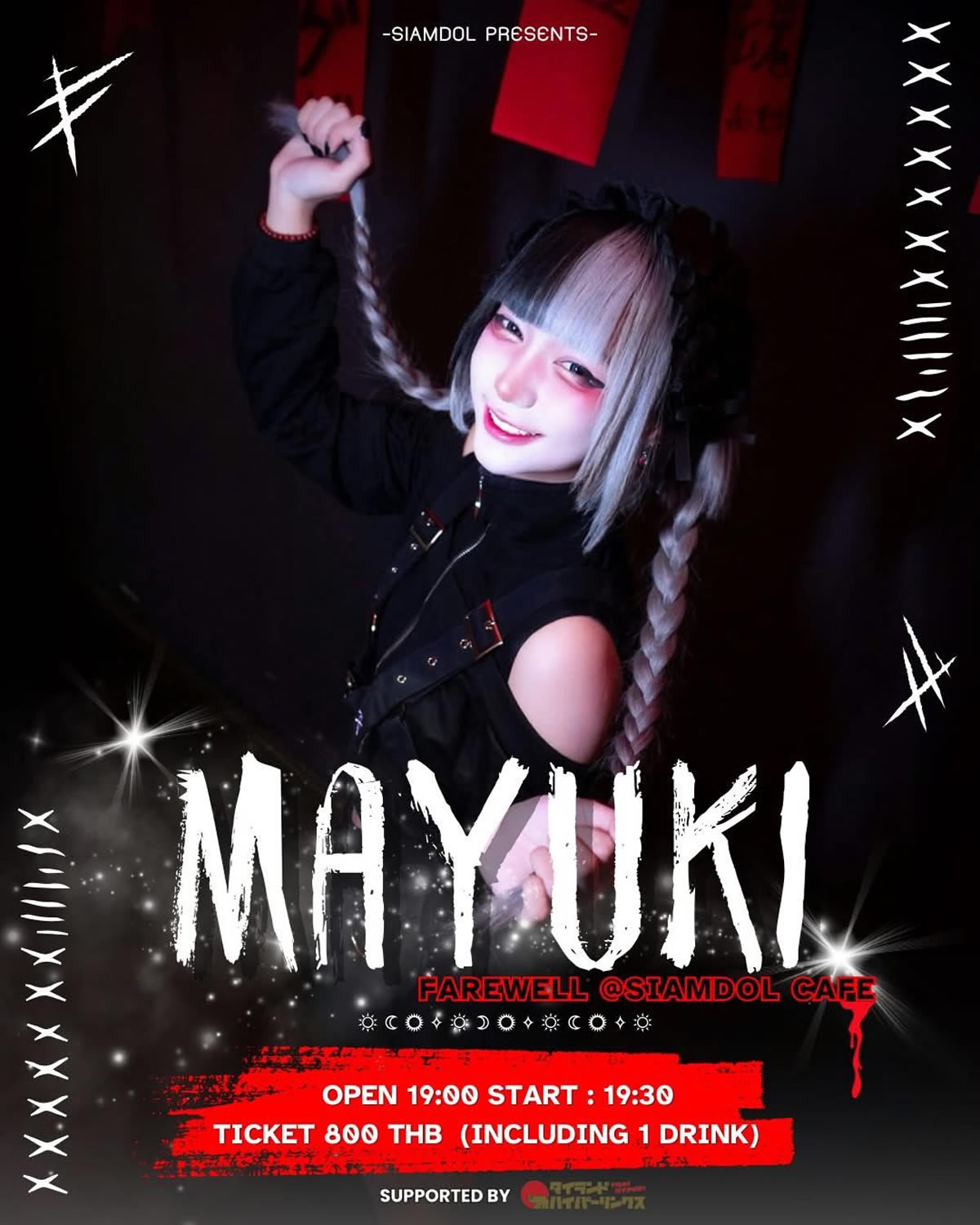 Siamdolは、IKINARI TELL ME(いきなりテルミー)のMayuki(マユキ)の卒業イベントとなる「Mayuki Farewell in Siamdol Cafe」を2025年10月13日(月)に、ドンキモール・トンロー3階のSiamdol Caféで開催します。約40分間の特別ステージが予定されています。
