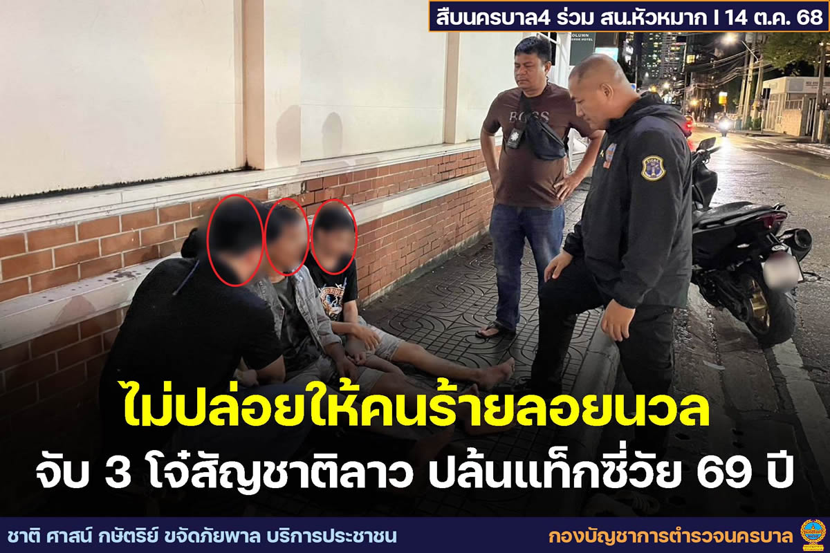 2025年10月12日早朝、バンコク・ラムカムヘン通りのソイ内で、タクシー運転手の男性(69)が3人組の乗客に襲われ、現金と携帯電話を奪われる事件が発生しました。バンコク都警察第4管区捜査課およびフワマーク警察署は同日夜、逃走していたラオス人の男3人を逮捕しました。