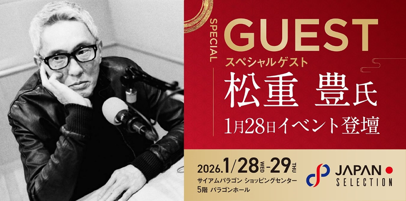 タイ・バンコクで開催される“オールジャパン”B2B特化型見本市『JAPAN SELECTION 2026』が、2026年1月28日(水)・29日(木)にサイアムパラゴン5階・パラゴンホールで開催されることが決定しました。主催は株式会社ディー・エム広告社。初日にはスペシャルゲストとして俳優の松重豊さんが登壇し、日本のものづくりや文化の魅力について語る予定です。