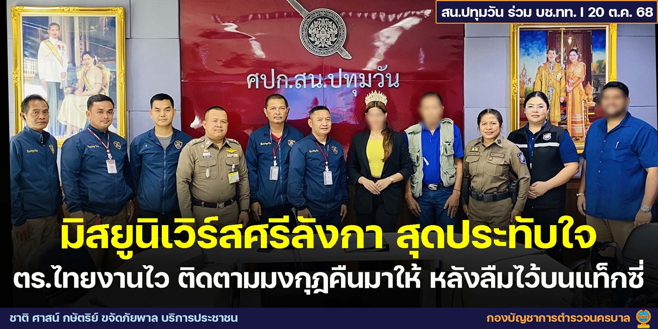 2025年10月19日午後1時48分ごろ、バンコク・パトゥムワン区のサイアムセンターポイント(サイアムスクエア・ソイ3)で、「ミス・ユニバース・スリランカ2025」の王冠が一時紛失する騒動がありました。