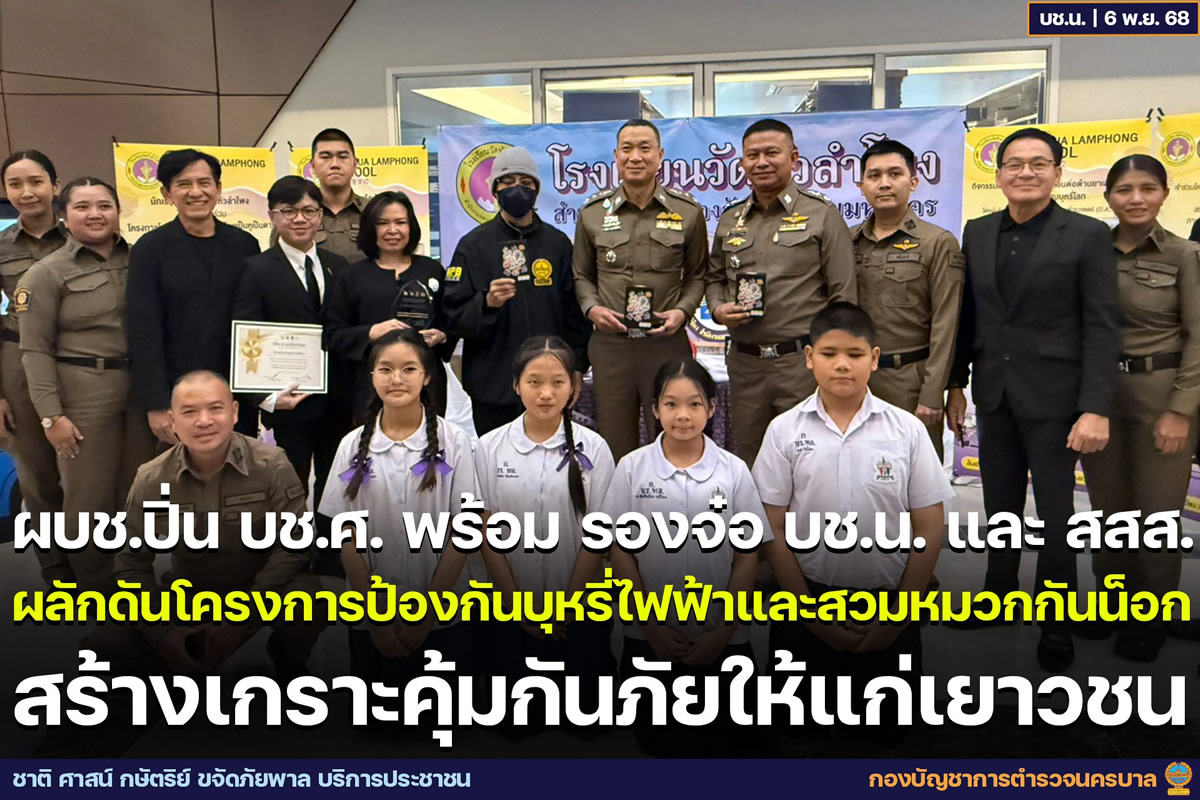 バンコク首都圏警察は2025年11月6日、青少年の安全を目的とした啓発プロジェクト「電子タバコは危険、ヘルメット着用は命を守る」の開会式を開催し、取り組みに協力した学校や関係者への表彰式を行いました。会場には約200名が出席しました。