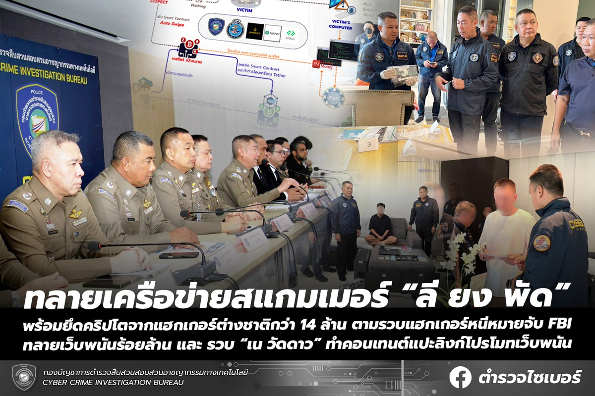 その後、11月6日、サイバー犯罪捜査局を中心とした合同部隊が、裁判所の捜索令状に基づきプーケット県タラーンのホテルを急襲。男の身柄を確保し、ノートパソコン、スマートフォン、暗号資産ウォレットなどの電子機器を押収しました。捜査にはFBIの担当者も立ち会っています。