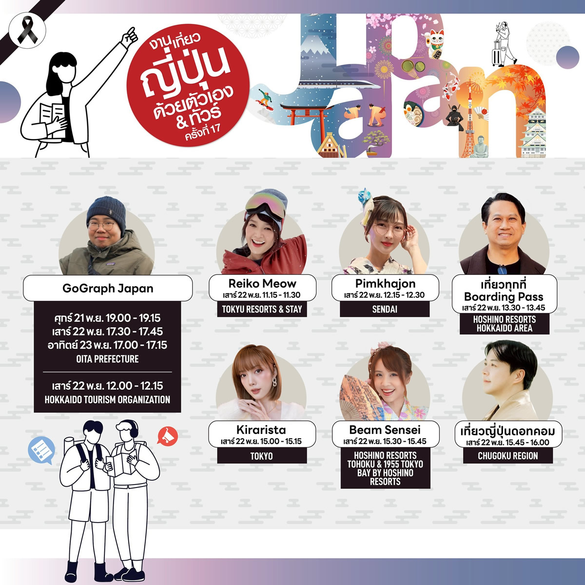 俳優の บุ๋น นพณัฐ をはじめ、บีม กวี、ออย อฏิพรณ์、แดน วรเวช、Reiko.ws、Pimkhajon、 Beam Sensei、Kirarista ら多くのインフルエンサーが登場。日本の魅力を多様な視点から語ります。