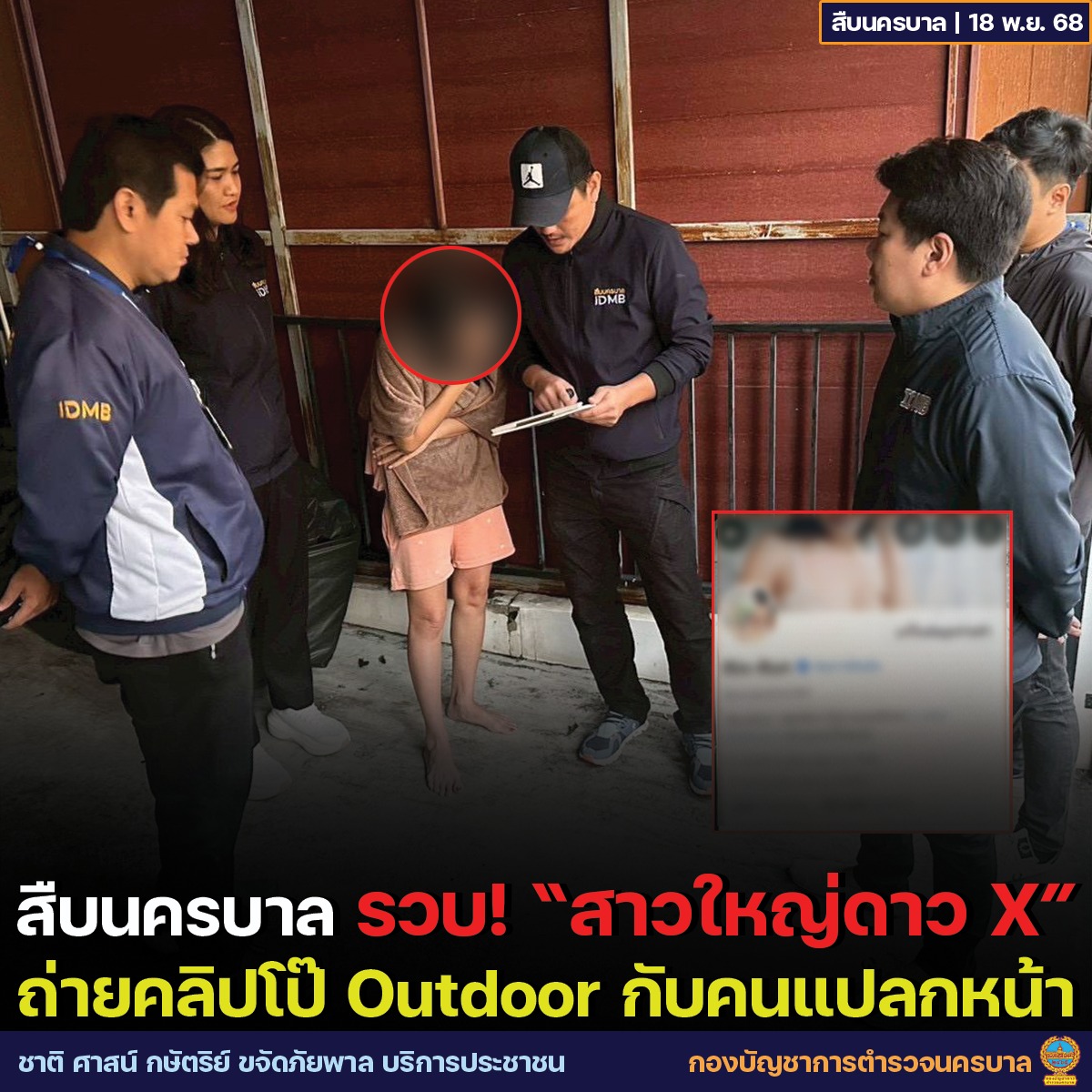 バンコク首都警察は2025年11月17日早朝、ソーシャルメディア上で不適切な動画を投稿していた疑いで、42歳の女をタイ中部サムットプラカーン県内の自宅前で逮捕したと発表しました。逮捕は午前6時20分、、裁判所の捜索令状に基づいて実施されました。