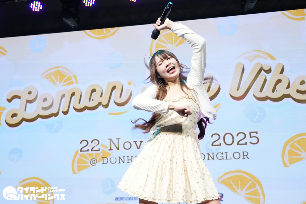 バンコクのドンキホール(ドンキモール・トンロー4階)で2025年11月22日(土)昼に、対バンライブ「Lemon Sky Vibes」が、開催されました。4番手で登場したのは、Stellagrima*です。