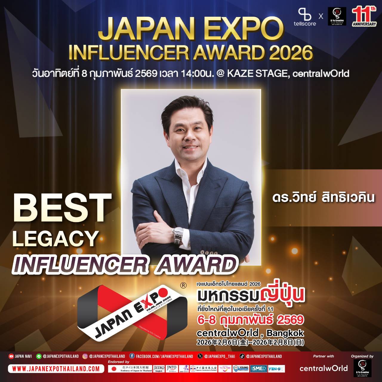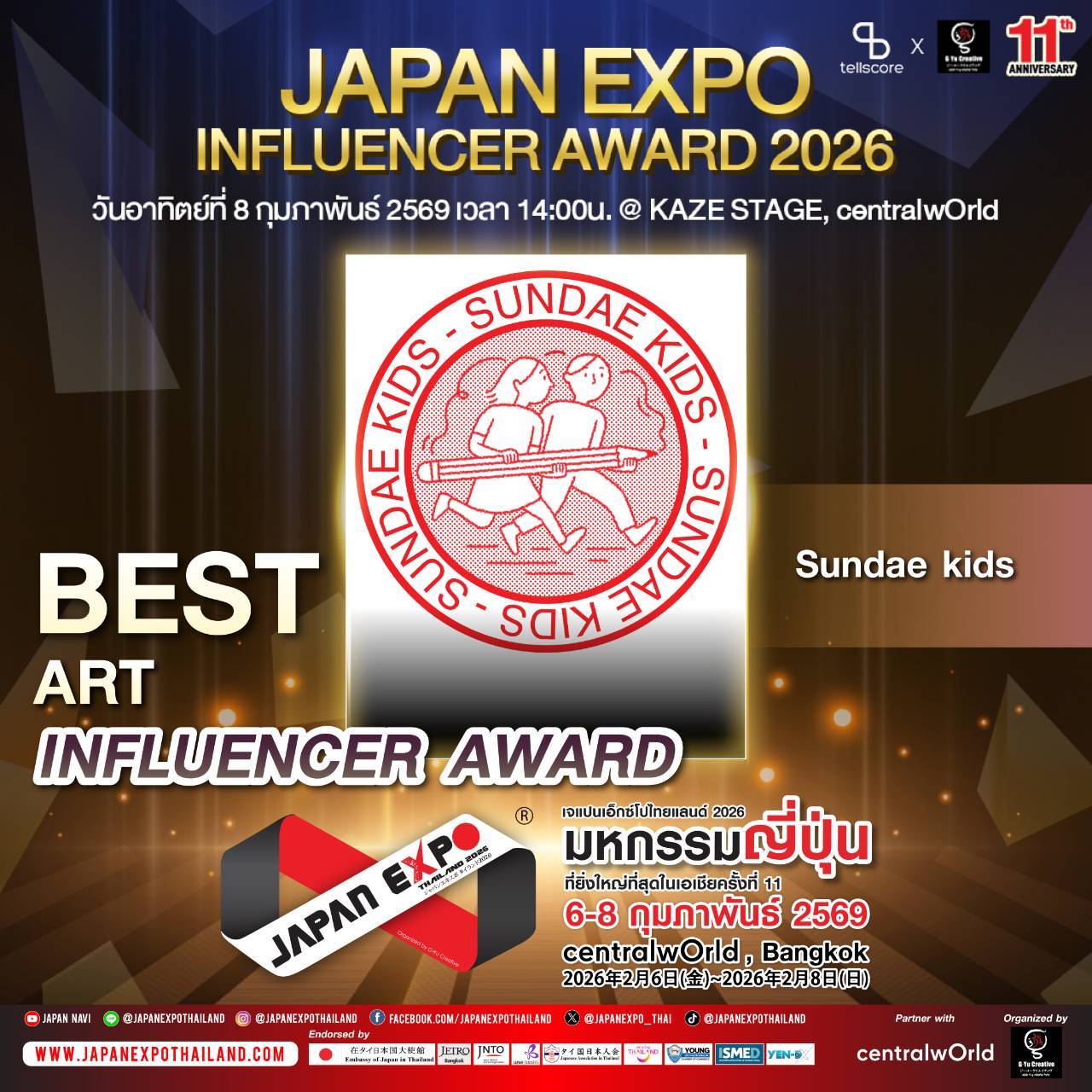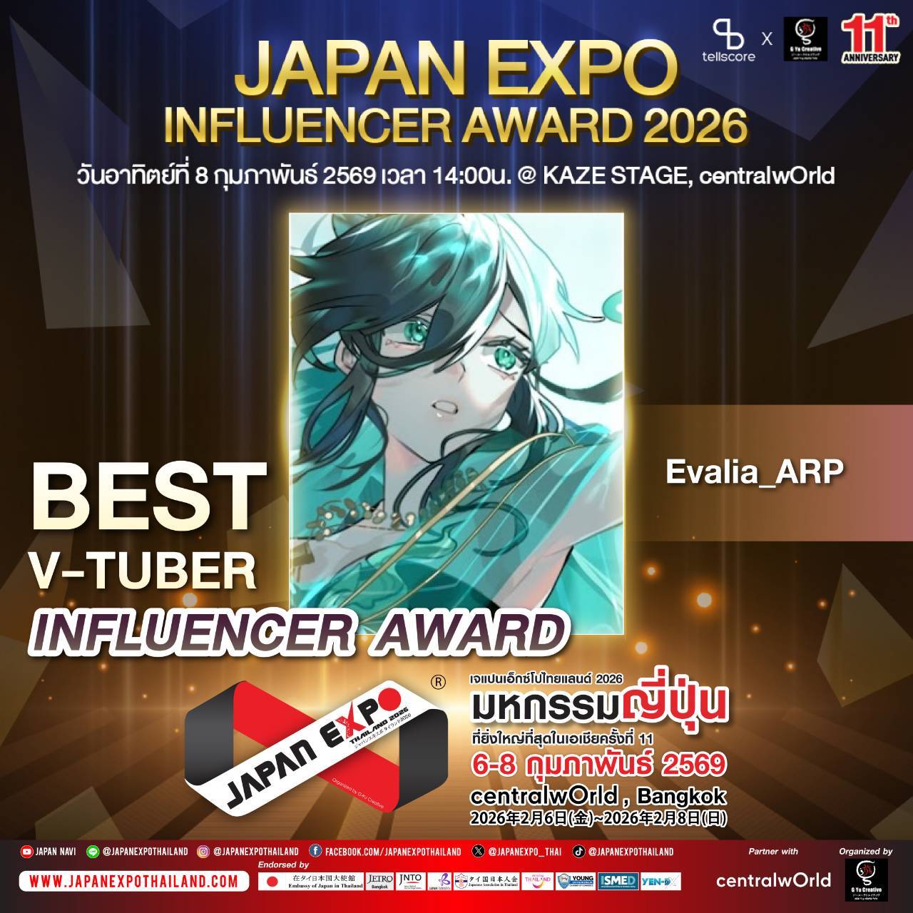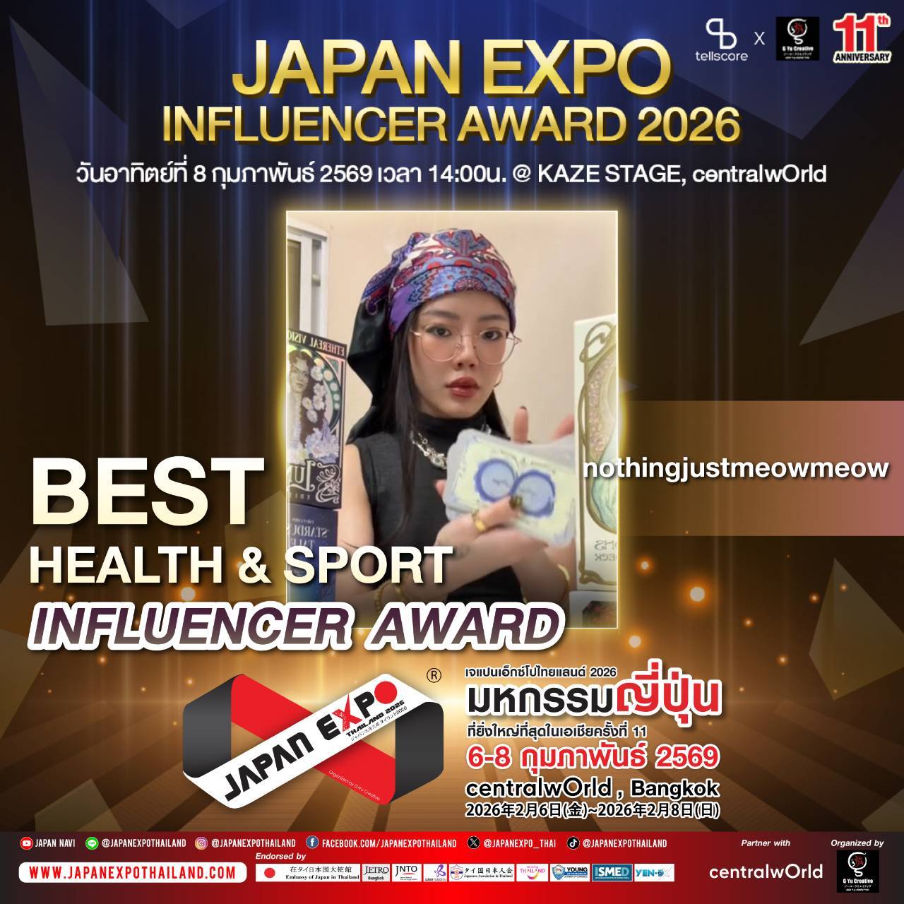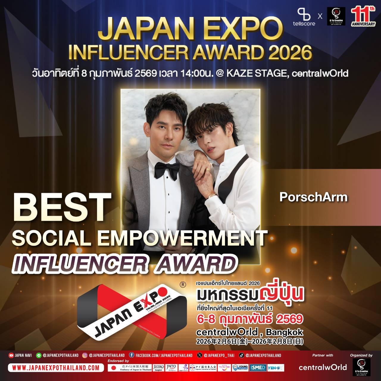 今回の表彰は、日タイのSoft Powerや文化的交流をさらに深めることを目的としており、ジャンルごとに活躍が認められたインフルエンサーが選出されました。授賞式は 「JAPAN EXPO THAILAND 2026」2026年2月8日(日)14:00〜14:45、CentralWorld(KAZE STAGE – ZONE B) にて開催されます。