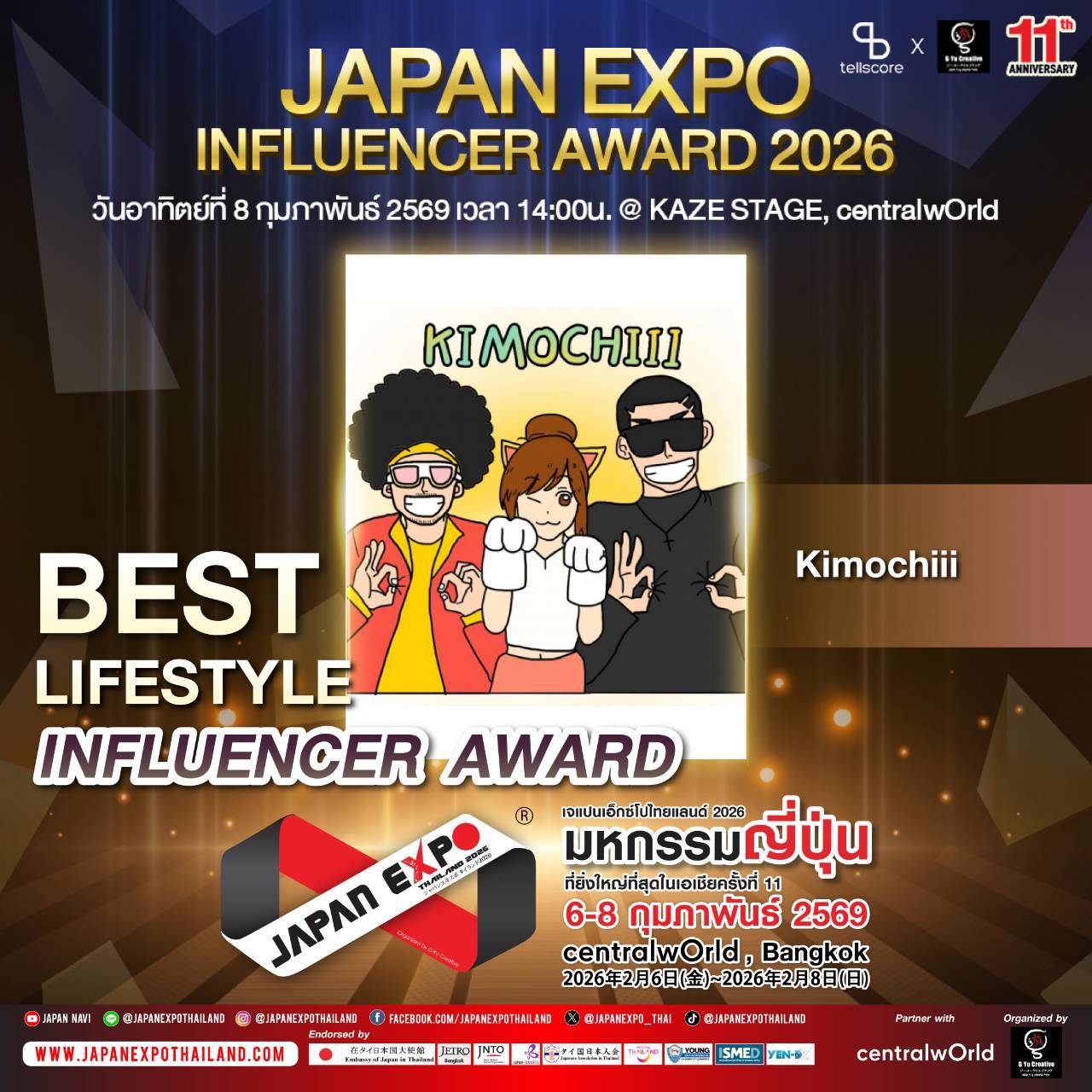 G-Yu Creative と Tellscore は、「JAPAN EXPO INFLUENCER AWARDS 2026」の受賞者18組を発表しました。本アワードは、日本文化への情熱を持ち、創造的なコンテンツを発信するインフルエンサーを称えるもので、4年連続で在タイ日本国大使館(Embassy of Japan in Thailand)が授賞を担当します。