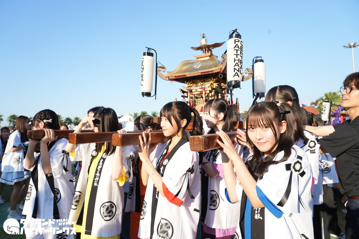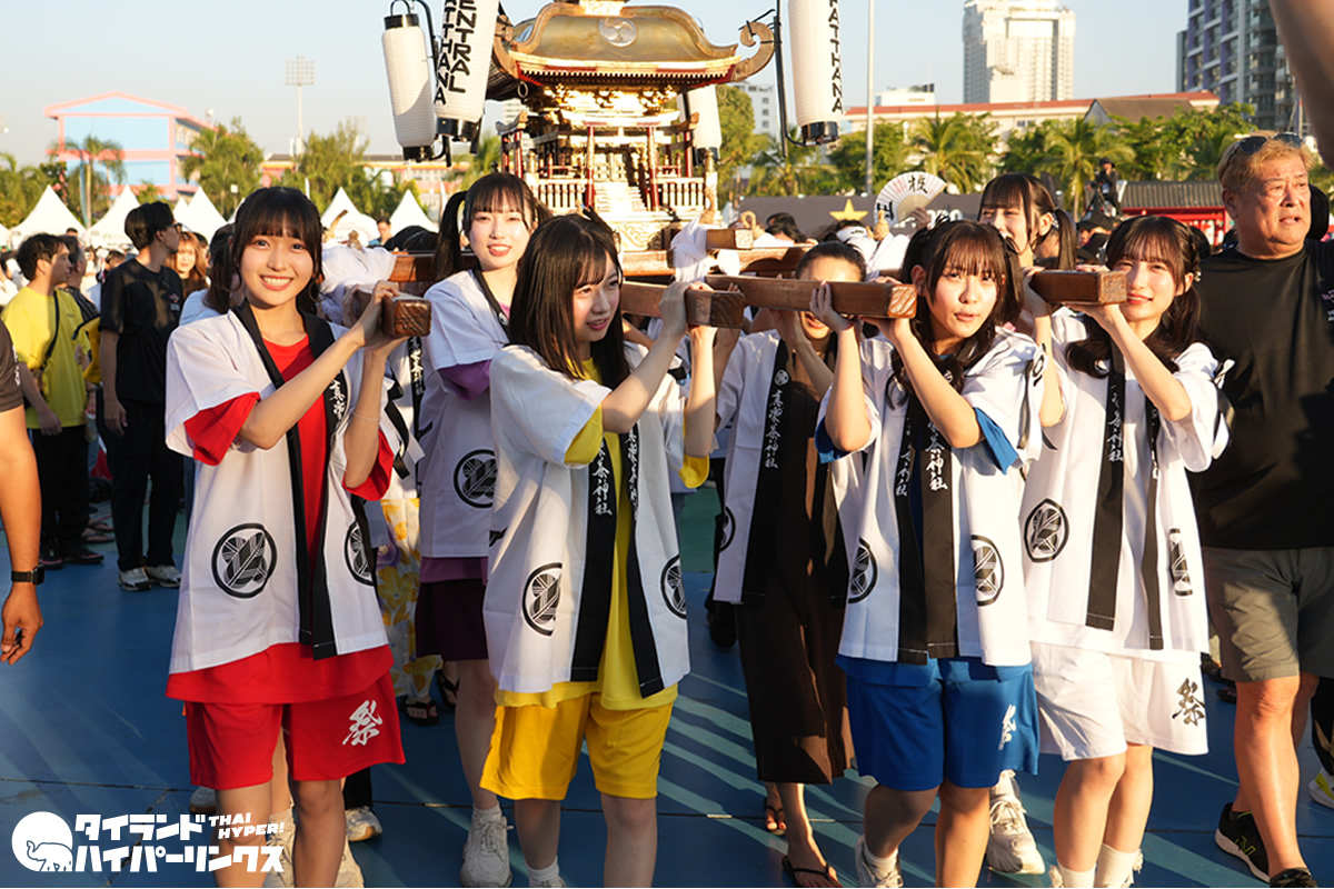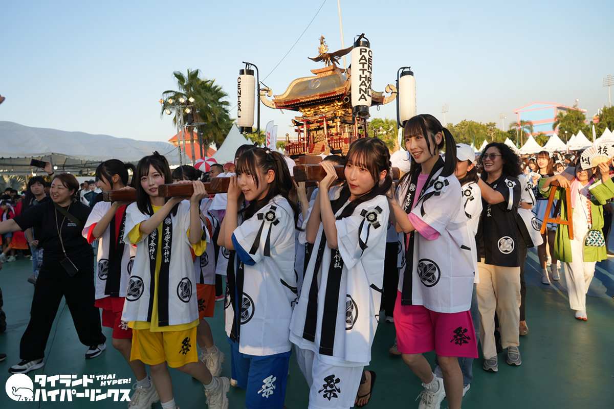 最終日には実際にお神輿を担いで会場内を練り歩きました。日本文化をタイの地で共有する姿は、訪れた多くの人々の心に残るものとなりました。
