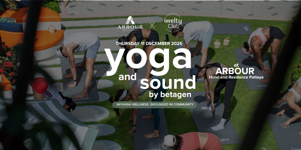 アーバー・ホテル&レジデンス・パタヤは、IWELTYと共同で「Yoga & Sound by Betagen」を開催します。日程は2025年12月11日(木)17時〜21時30分。タイ東部パタヤの美しい夕焼けを一望できるホテル屋上で、心身を整える特別なサンセット・ウェルネスイベントが行われます。
