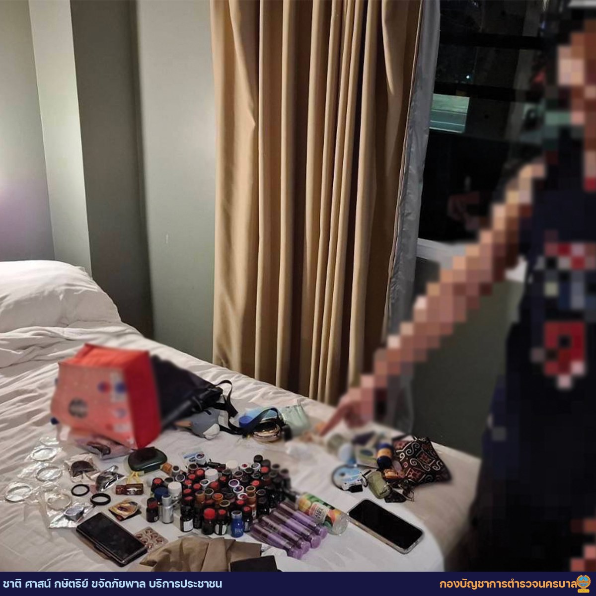 警察は同日21時15分ごろ、ラチャダー地区のホテル客室を急襲し、男の身柄を確保しました。容疑は、性的欲望のあっせん、わいせつ物の制作・頒布、コンピューター犯罪法に基づくわいせつデータの公開など多岐にわたります。