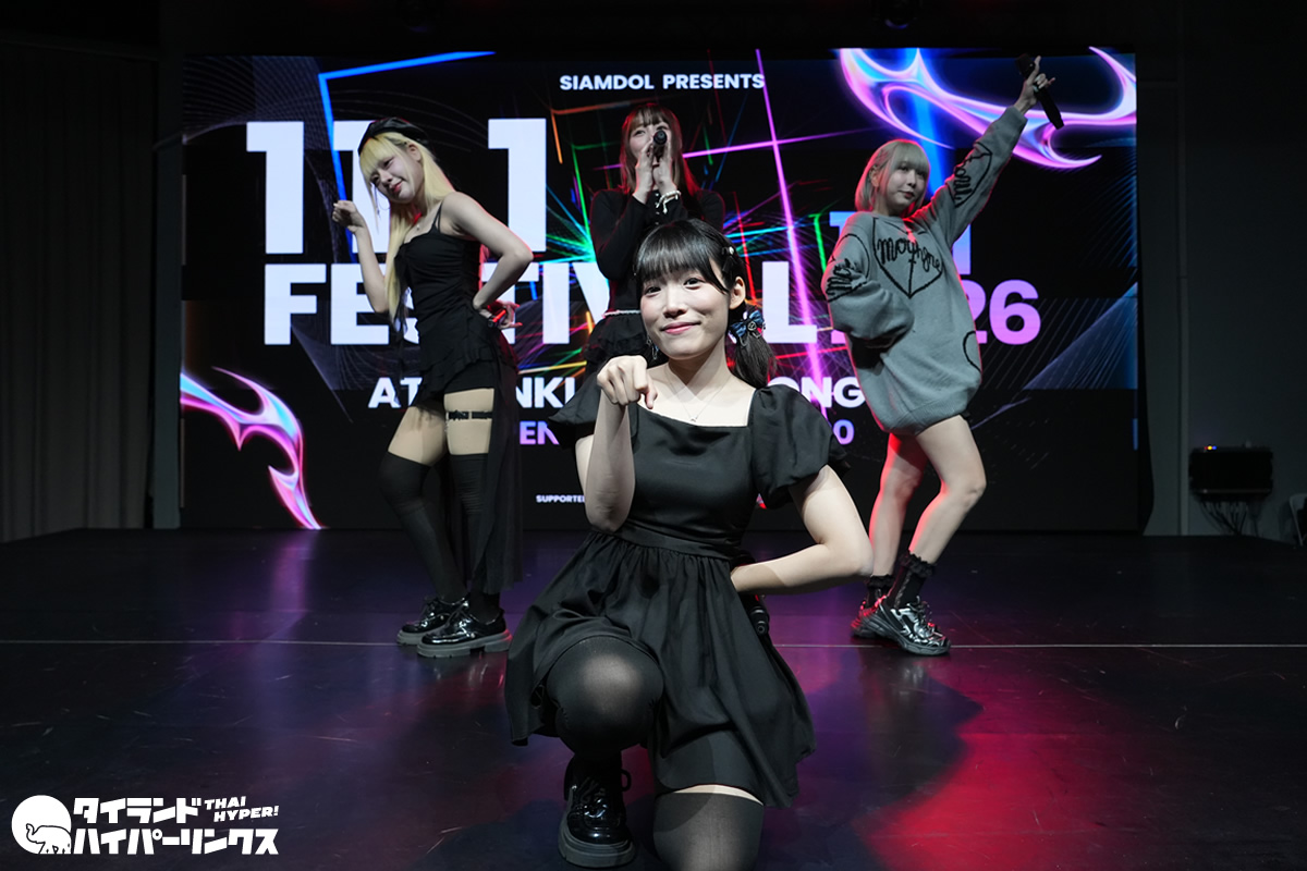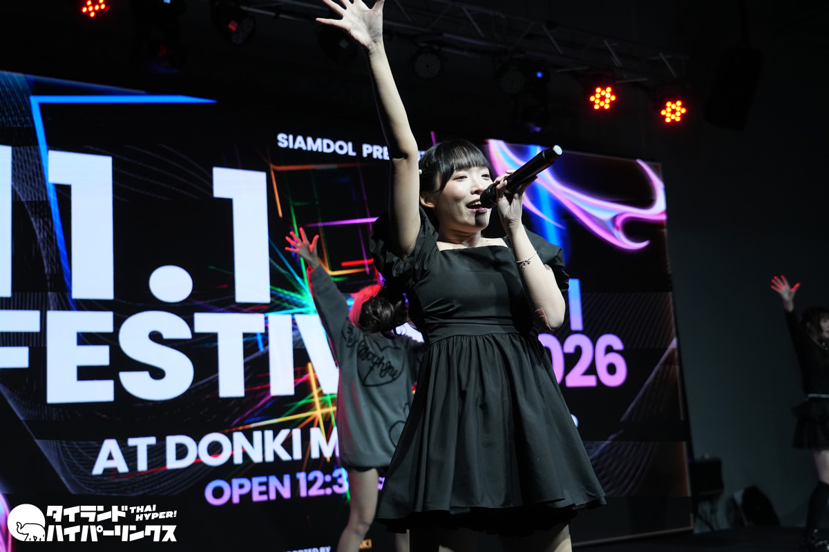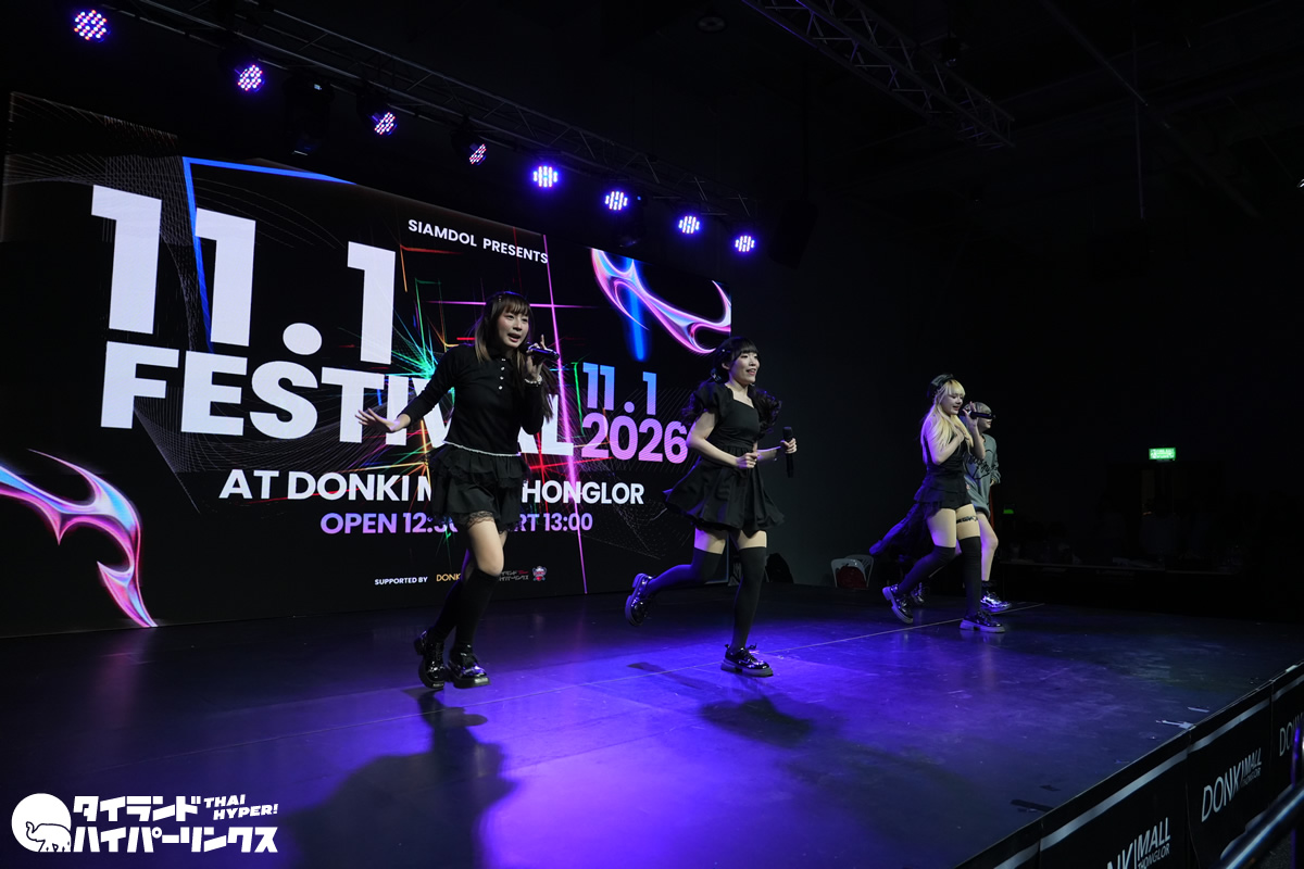 タイのアイドル11組が出演した「11・1 フェスティバル」が、バンコクのドンキホール(ドンキモール・トンロー4階)で2026年1月11日に開催されました。8番手で登場したのはIKINARI TELL ME(いきなりテルミー)です。