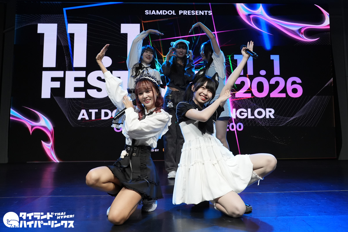 タイのアイドル11組が出演した「11・1 フェスティバル」が、バンコクのドンキホール(ドンキモール・トンロー4階)で2026年1月11日に開催されました。トリで登場したのはSumomoです。