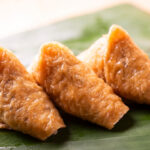 「グリーンカレー稲荷」は、酢飯にグリーンカレーで仕立てたおぼろとパクチーをたっぷり混ぜ込み、ピーナッツで食感のアクセントを加えた一品。甘みと辛味、香草の香りが一体となり、同店の定番メニューとして親しまれています。