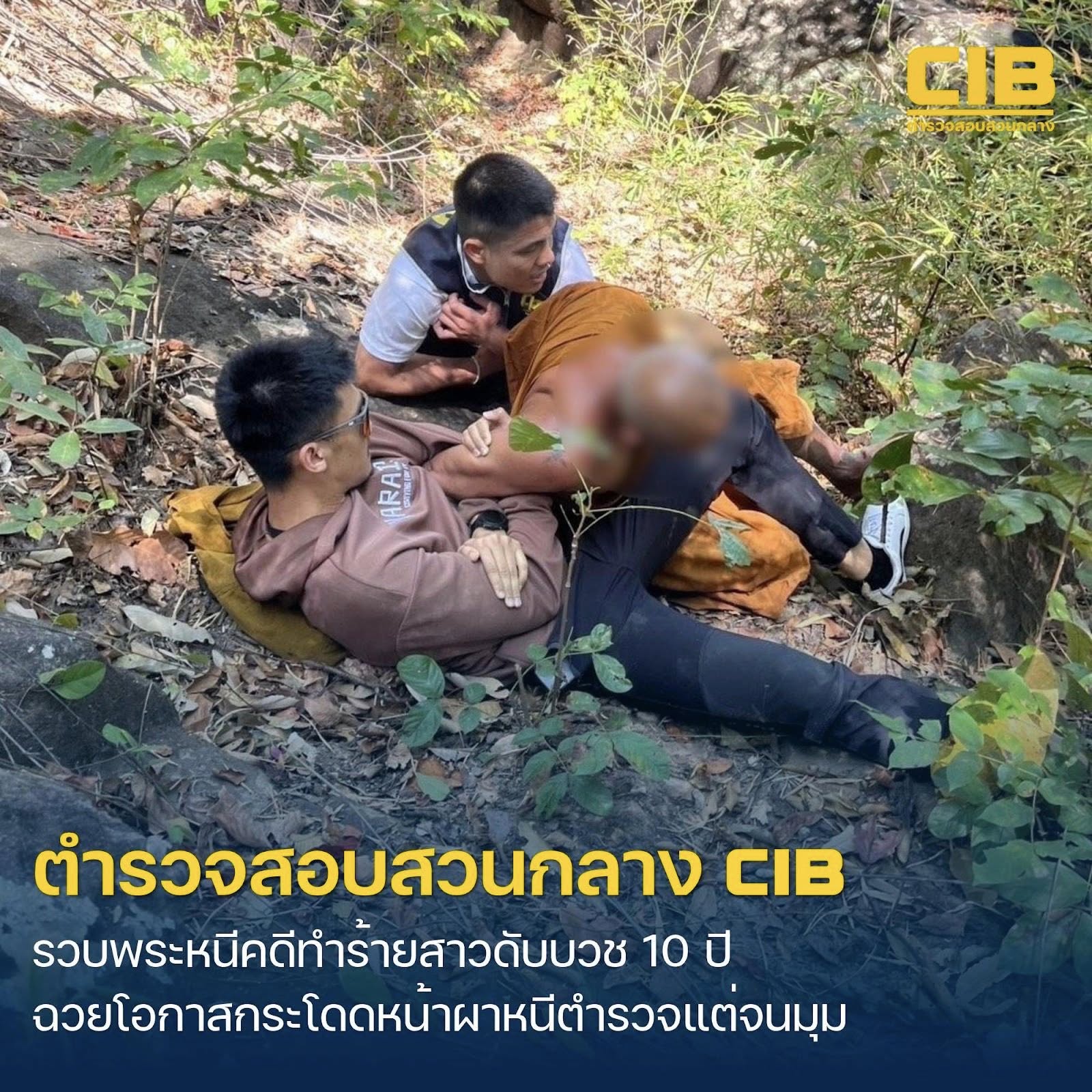 その後の捜査で、容疑者は事件後に出家し、東北部ナコンパノム県の寺院施設で僧侶として10年以上潜伏していたことが判明しました。中央捜査局の特殊作戦部隊が現地で身柄の確保を試み、逮捕状を提示しましたが、容疑者は還俗前に仏像に礼拝したいとして山へ向かうことを申し出ました。