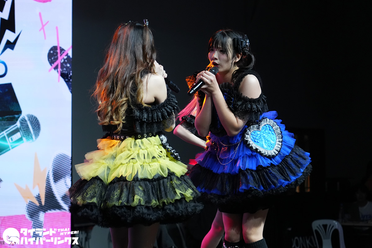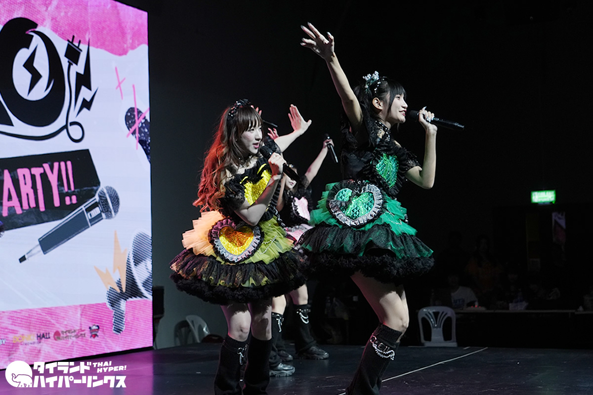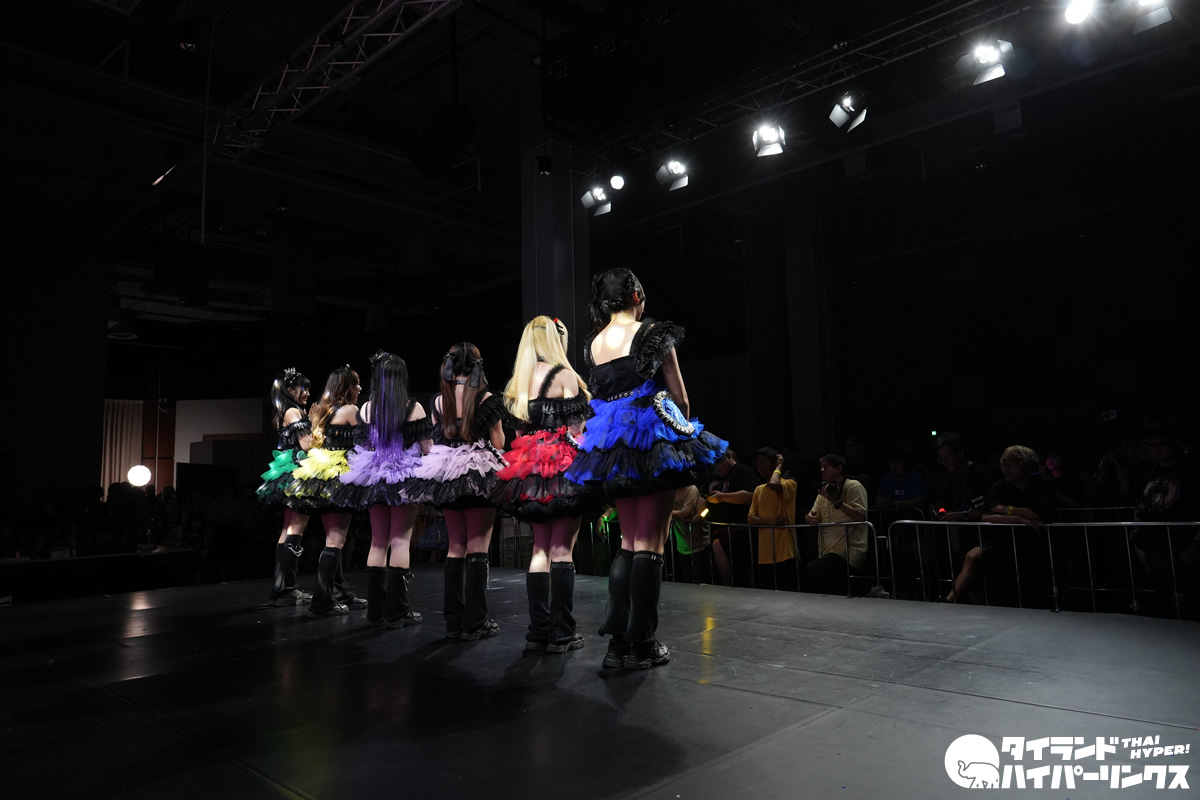 電子220(denshi220)は、Autumn、 Bambiboo、 Biigew、 Hanita、 Marina、 Mikotoの6人組。なおこの日は、先輩にあたる元でんぱ組の相沢梨紗と藤咲彩音も会場に駆けつけています。