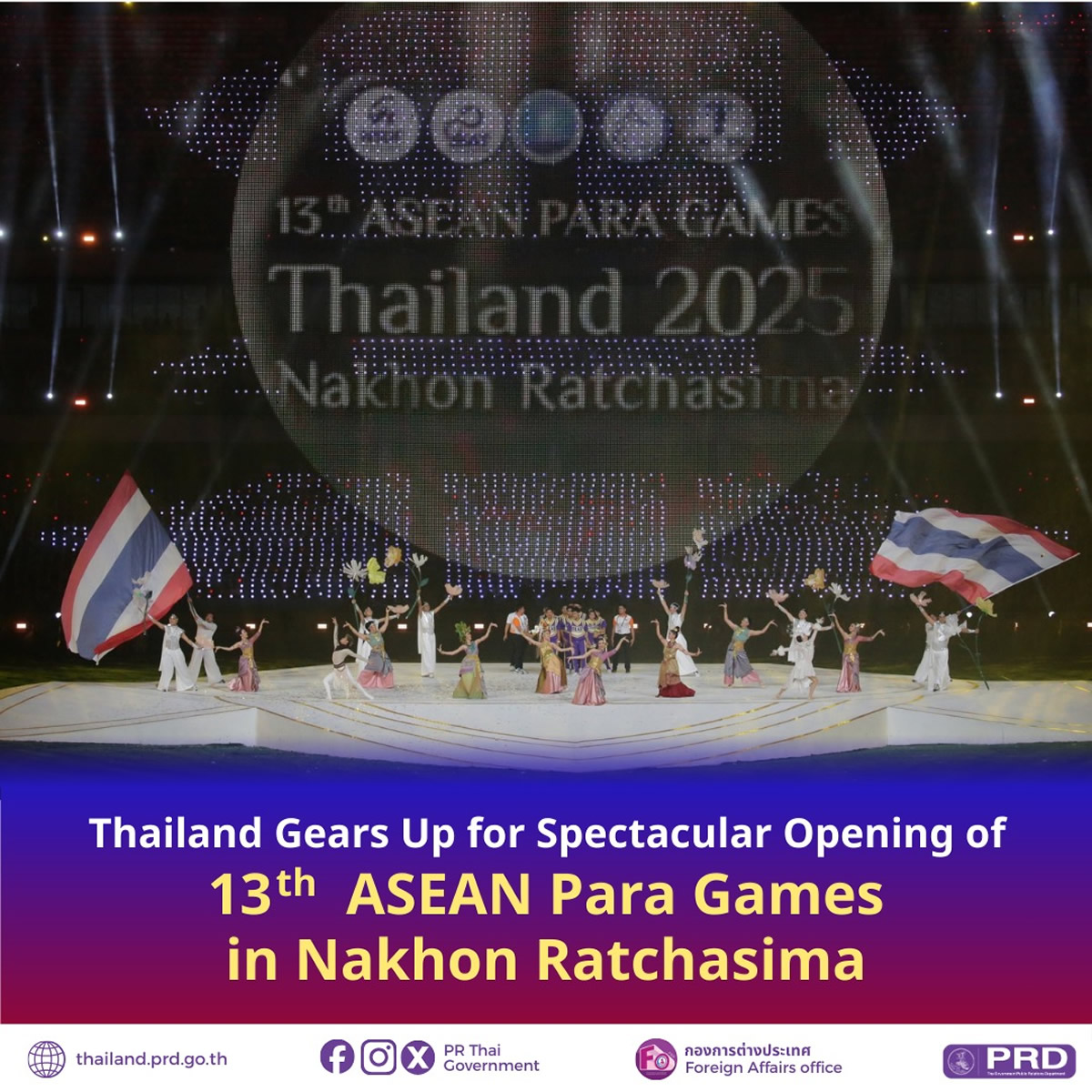 【ナコンラチャシマ】タイ国スポーツ庁(SAT)は、第13回ASEANパラゲームズを2026年1月20日から26日まで、東北部ナコンラチャシマ県で開催すると改めて伝えています。開会式は1月20日夜、同県のラーマ9世80周年記念スタジアム(2007年12月5日)で行われます。