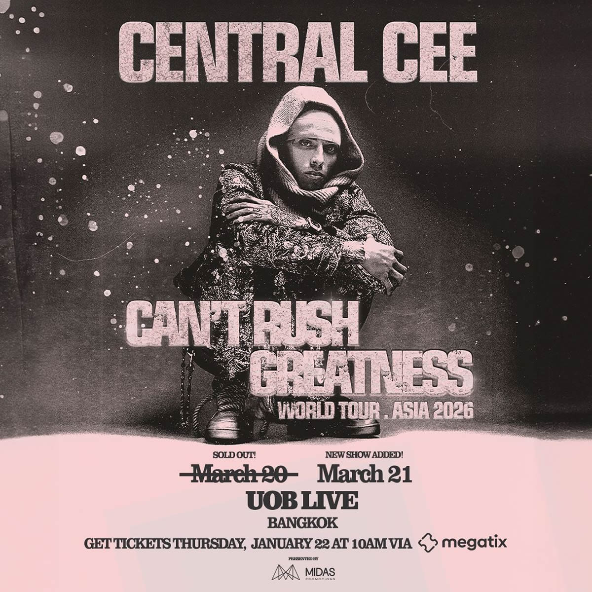 イギリス出身の人気ラッパーであるCentral Cee(セントラル・シー)のバンコク公演が大きな注目を集めています。2026年に開催されるワールドツアー「CAN’T RUSH GREATNESS WORLD TOUR – Asia 2026」のバンコク公演は、チケット販売開始直後に完売となりました。