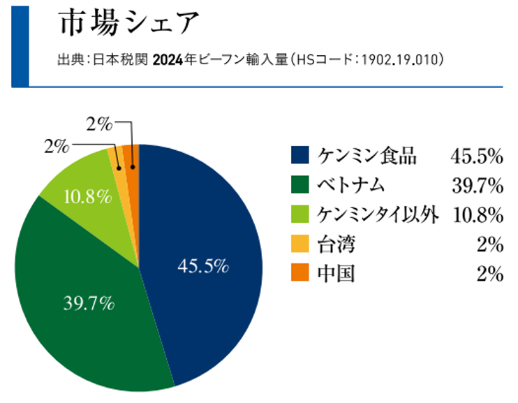 より品質の高いビーフンを安定して生産するため、ケンミン食品は1987年にタイに自社工場を設立。ビーフンに適した硬質米は日本国内での調達が難しかったことから、米の生産に適したタイの環境に着目したとしています。現在もタイの自社工場では、原料調達から製めん、包装まで一貫した管理体制のもとで生産が行われています。