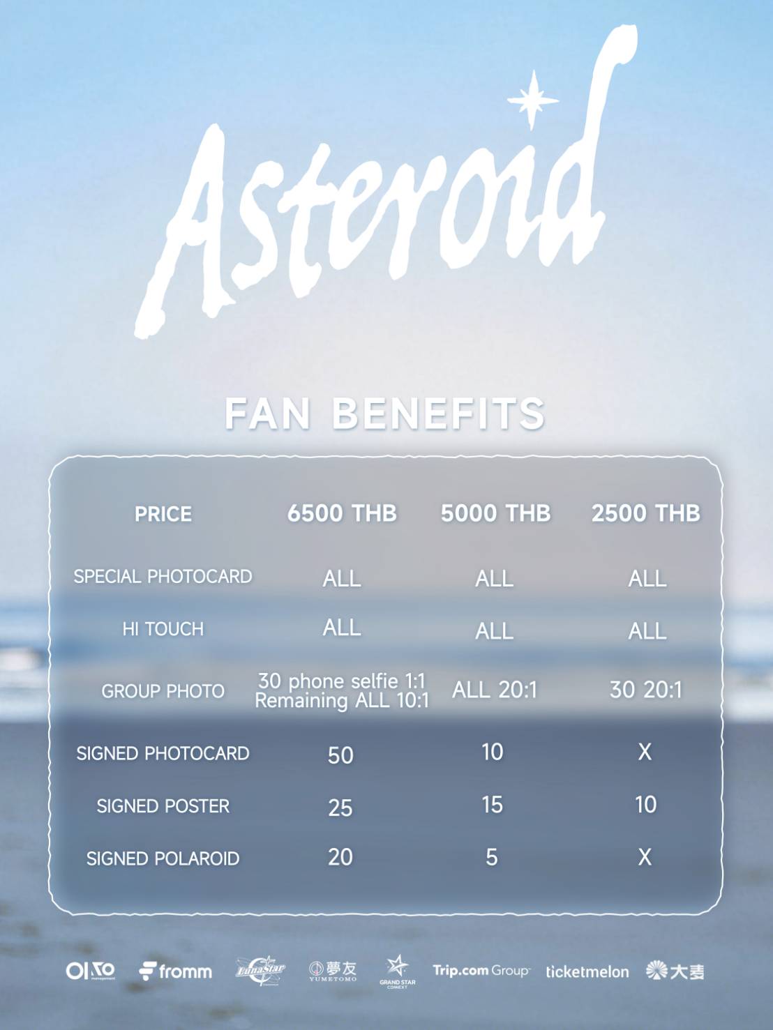 チケットは2026年2月11日(水)12時から販売開始。TicketmelonおよびTrip.comで取り扱われ、価格は6,500バーツ、5,000バーツ、2,500バーツの3区分です。全席でHI TOUCHが実施されるほか、抽選で1対1のセルフィー撮影特典も予定されています。