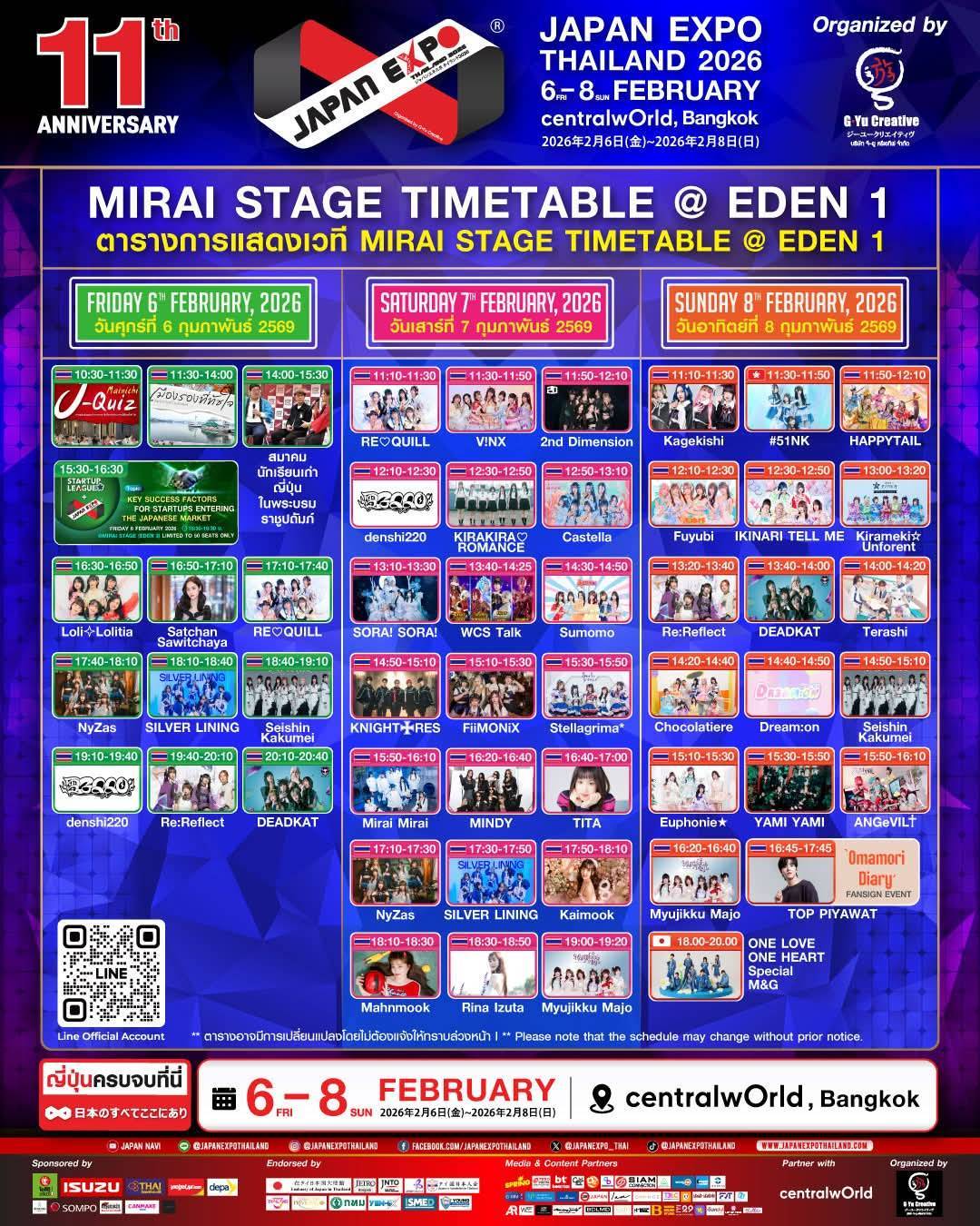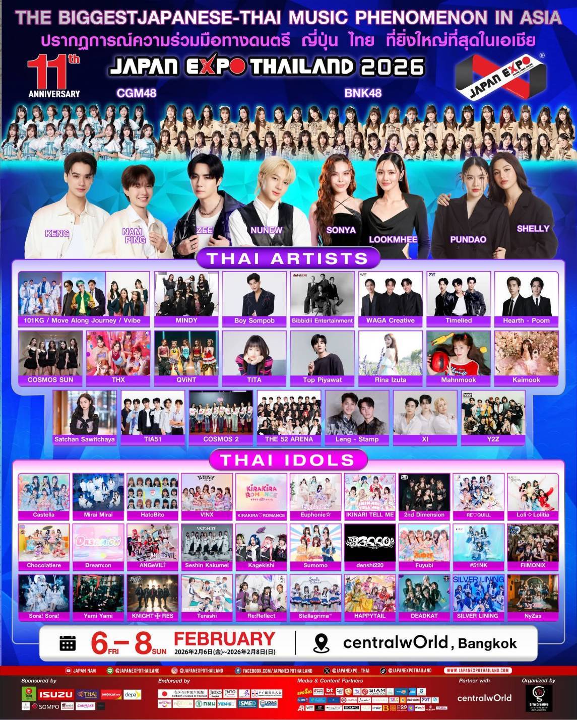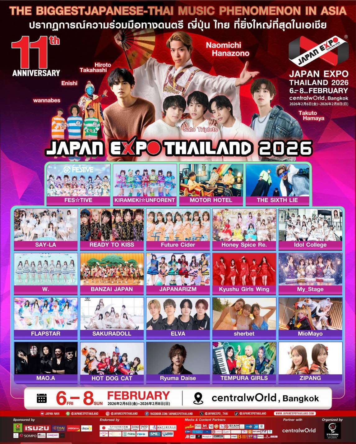 アジア最大級の日本イベント「JAPAN EXPO THAILAND 2026」が、2月6日(金)から8日(日)までの3日間、バンコク中心部のセントラルワールドで開催されます。今年は11周年を迎え、「Japan Thai United as One」をテーマに、日本とタイのソフトパワーを結集した大規模イベントとして行われます。