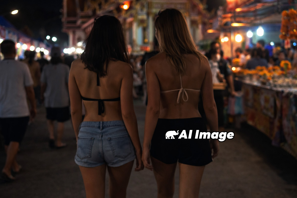 報道によると、問題となったのはプーケット県ムアン郡で行われていた寺院イベントで、動画にはビキニ姿の外国人女性2人が会場を歩く様子が映っていました。撮影者とみられる男性が、イベントから立ち去るよう声をかける場面も確認されており、女性側は撮影をやめるよう求めたとされています。