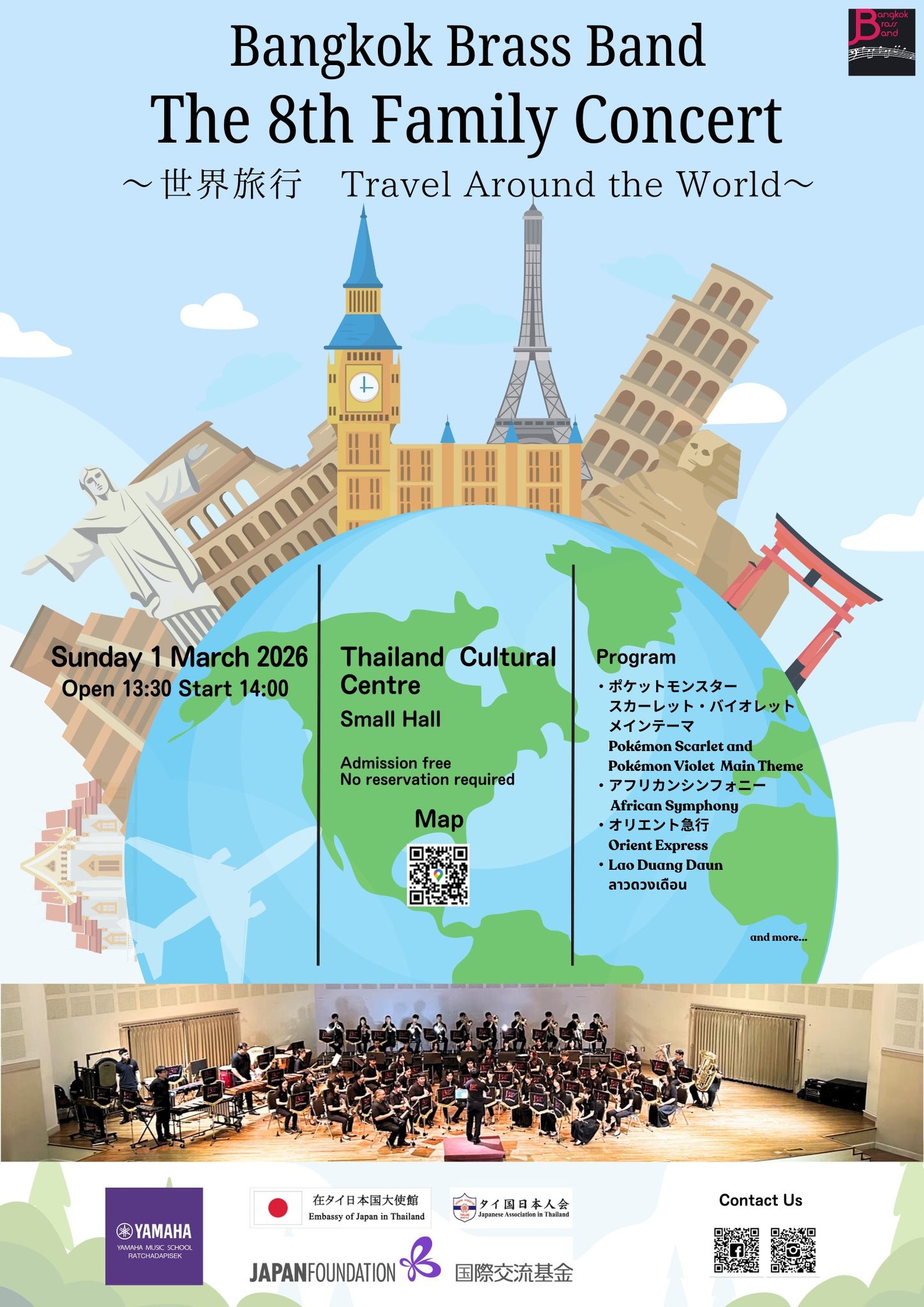 2026年3月1日(日)、バンコクのタイ文化センター小ホールにて「Bangkok Brass Band 第8回ファミリーコンサート」が開催されます。