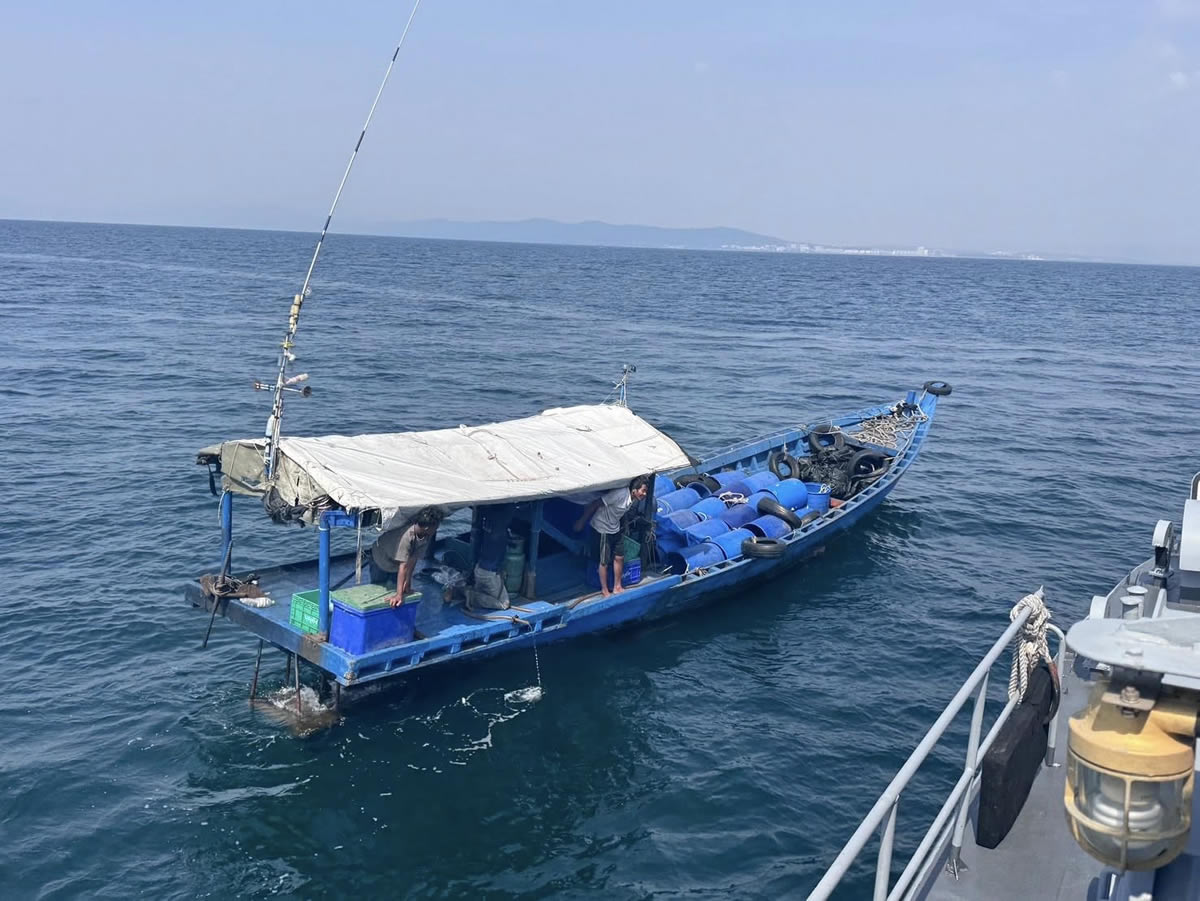 検査の結果、船舶はカンボジア国籍で、登録番号が確認できず、船舶関連書類も所持していなかったほか、関税手続きを経ずに貨物を輸送していた疑いがあることが判明しました。船内にはカンボジア人乗組員3人が乗船していました。