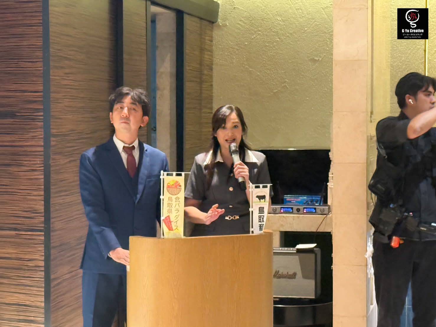 ジーユークリエイティヴ社のユパレット・エトラパカル(Yuri)CEOと小林智美副社長が、バンコクのJWマリオット・ホテル・バンコクで開催された鳥取県産食材のプロモーションイベントに出席しました。