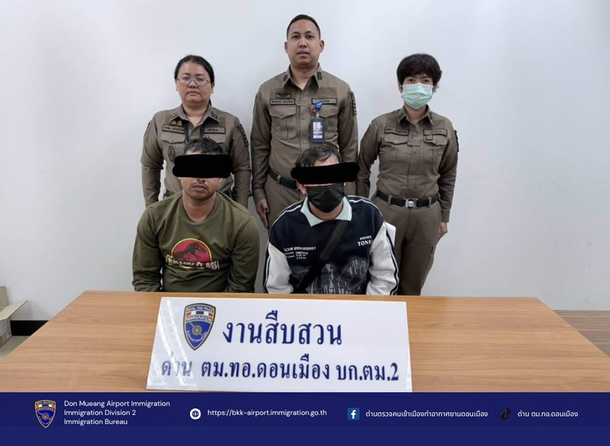 発表によると、2人はいずれも「許可期間を超えて王国に滞在した外国人」に該当し、不法滞在日数はそれぞれ1,082日と991日に及んでいました。捜査チームは、ドンムアン空港第2ターミナル(国内線)3階の出発ロビーで身柄を確保しました。