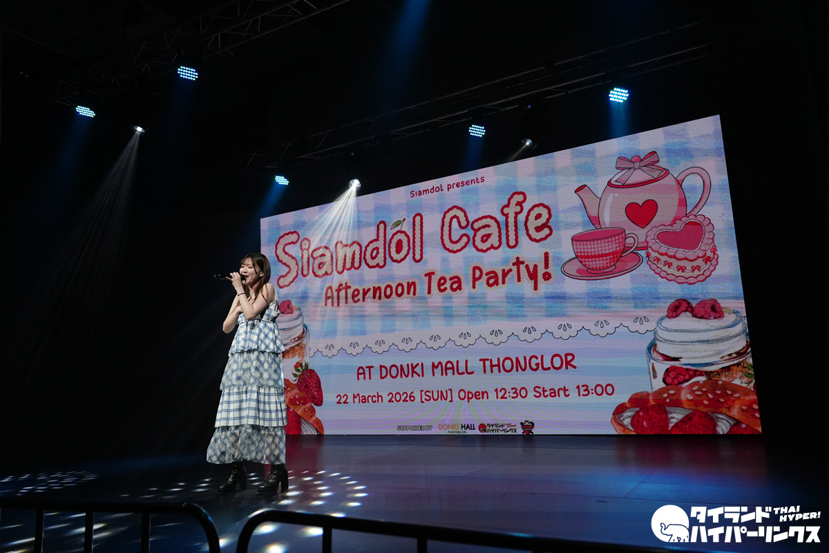 さらに3月22日にはバンコクへ移動し、アイドル対バンライブ「Siamdol Cafe Afternoon Tea Party」に出演。「世界は恋に落ちている」「初恋サイダー」「プロミスザスター」「Brand New Me」の4曲を披露しました。